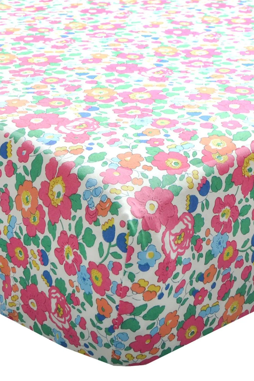 100% Liberty Tana Lawn® Cotton. Thread count 240. Available in 14 different sizes, for children and adults alike. Elasticated edges around the entire fitted sheet make bed changing quicker and easier. Fitted sheets in sizes larger than a single feature 2 panels down the sides.