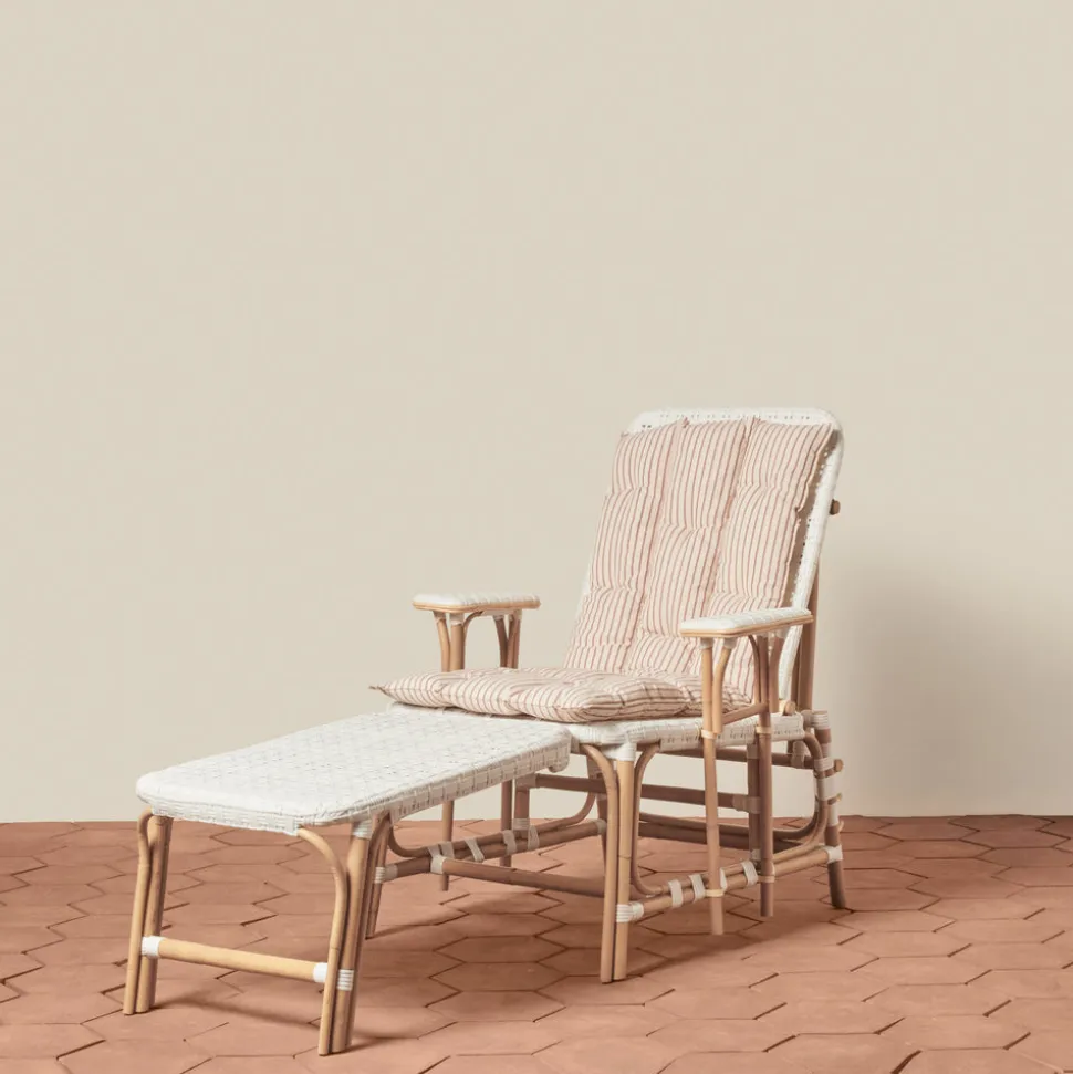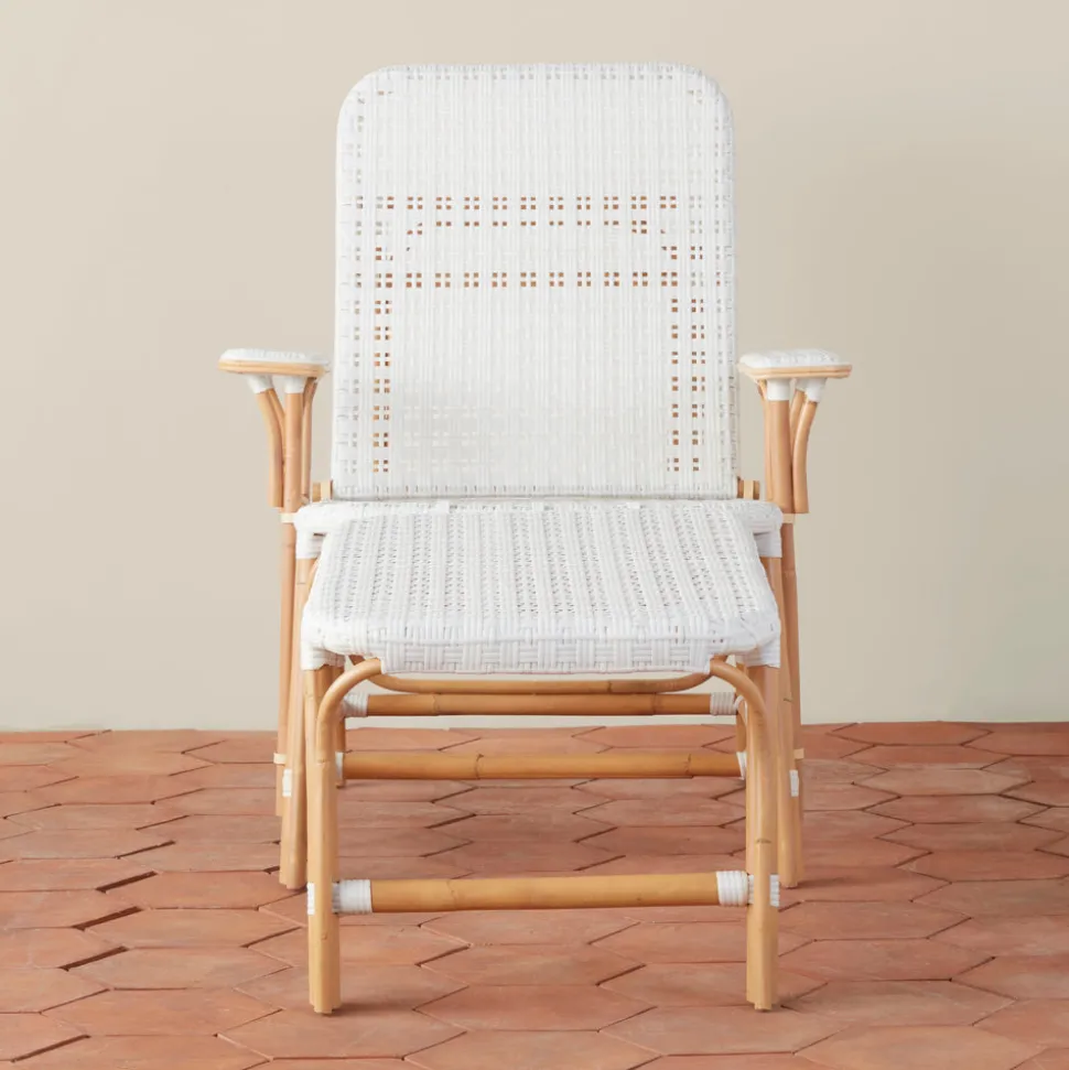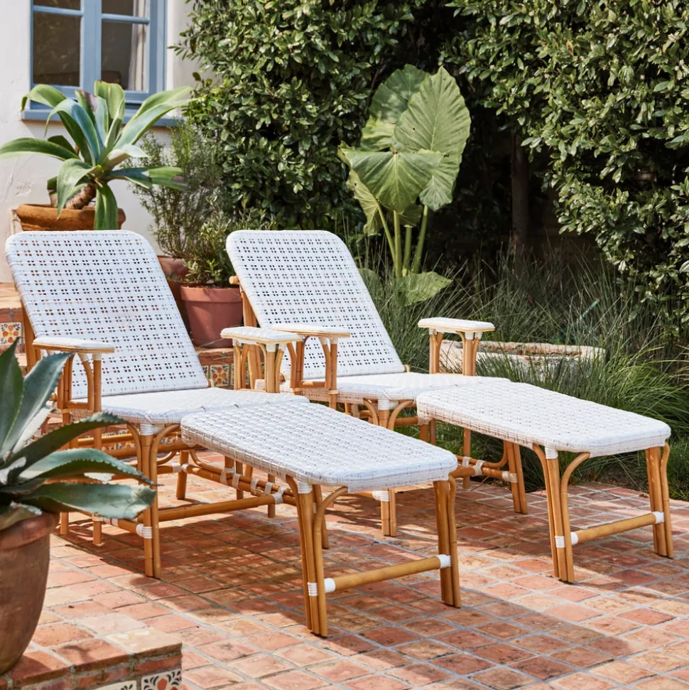 At once beautiful and timeless, Woven designs mindfully designed pieces for your home and beyond. Woven invites you to create spaces that are layered and natural—an expression of you. Expertly handwoven from sustainably harvested Manau rattan and recyclable performance wicker, the Flore Outdoor Chaise Lounge adds a welcome touch of warmth and texture to terraces or sunrooms. Wide armrests offer a spot for a cup of iced and a book with elbow room to spare, while the adjustable back and extended length invites you to put your feet up and bask in the soleil. Featuring sustainably harvested rattan with performance rush, this stylish seat will take you through seasons to come. Recommended to cover during inclement weather or when not in use.