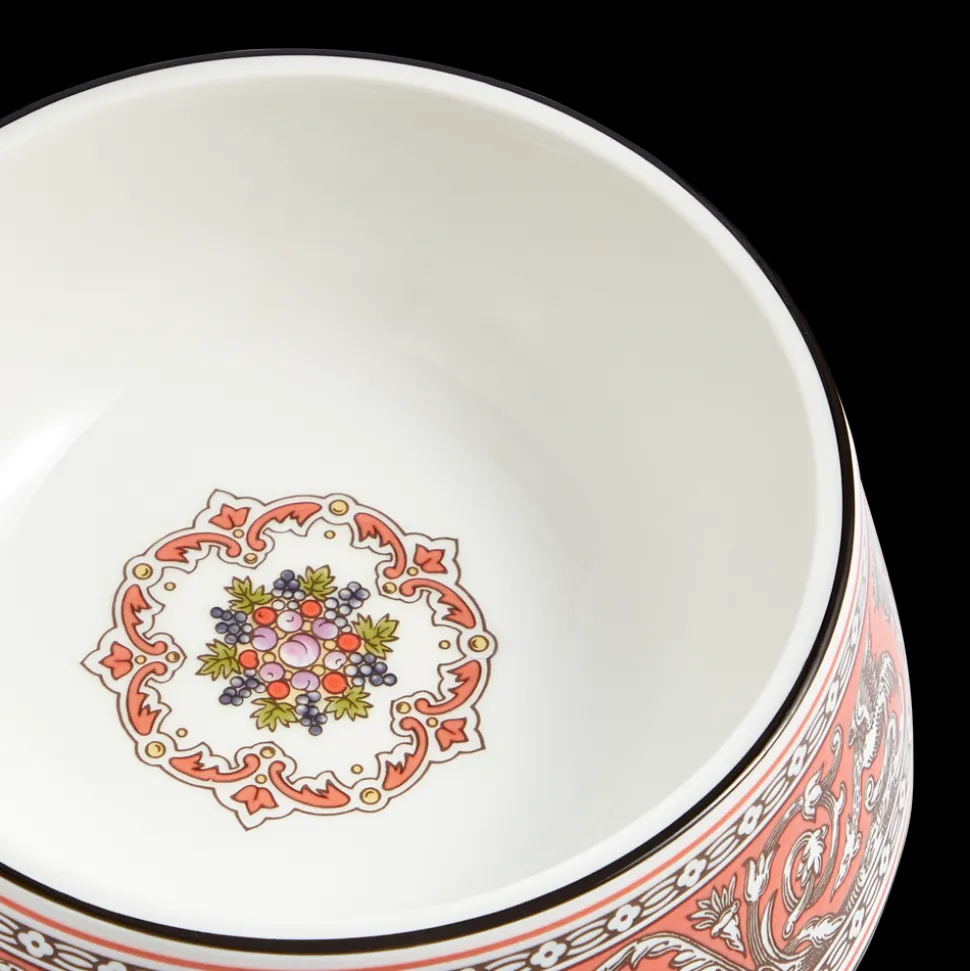 For over 260 years, Wedgwood has produced timeless, eclectic stoneware and china that has graced the tabletops of kings, queens, and some of the finest dining rooms in the world. From its factory in Barlaston, England, the brand’s signature dishware and household items are thrown, modeled, and decorated by artisans who spend a lifetime mastering their craft. First introduced in 1874, the Florentine collection has mythical creatures roaming amidst fantastic flora in delicately hand-rendered motifs set against the clarity of white, fine bone china. With the Florentine Salmon Pet Bowl, your pet will enjoy the beauty of fine dining.