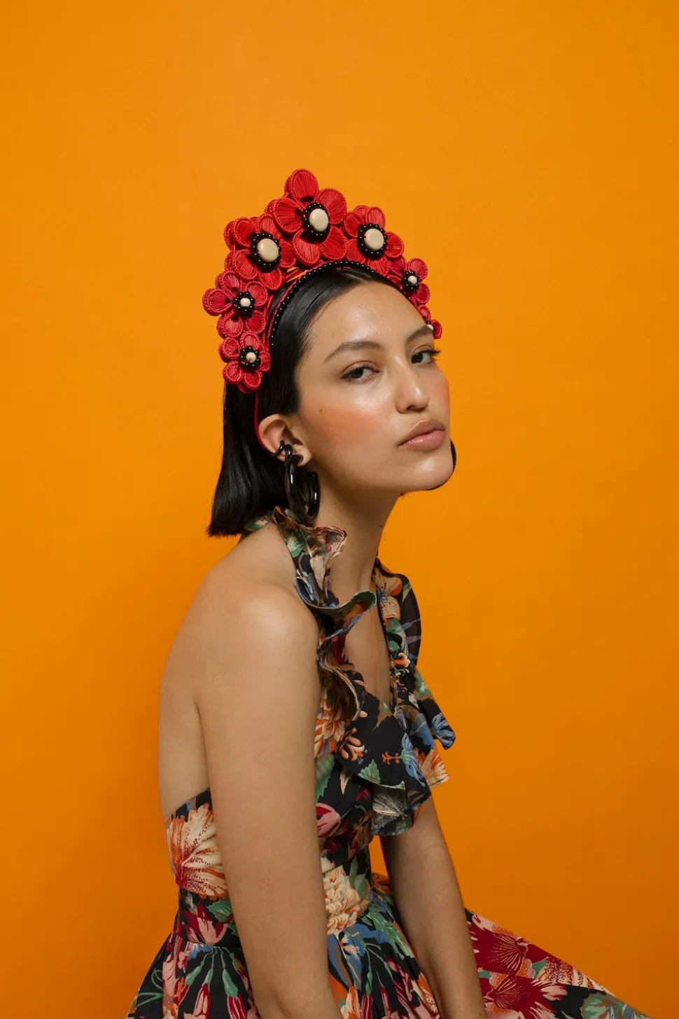 Magnetic Midnight is an evening and special occasion accessories brand by designer Lucia Echavarría. Echavarria’s distinct headbands, bags, and accessories are unique statement pieces that reflect a modern aesthetic imbued with a love for tradition and craftsmanship. Each piece is beautifully handcrafted in Colombia, requiring a long fabrication process from a variety of craftsmen around the country. Only a limited number are made and each piece is unique. The Flower Iraca Headpiece in Red features handwoven Iraca flowers embellished with wooden and glass beads. An alternative to the traditional flower crown, it’s an ideal statement accessory for a summer look.