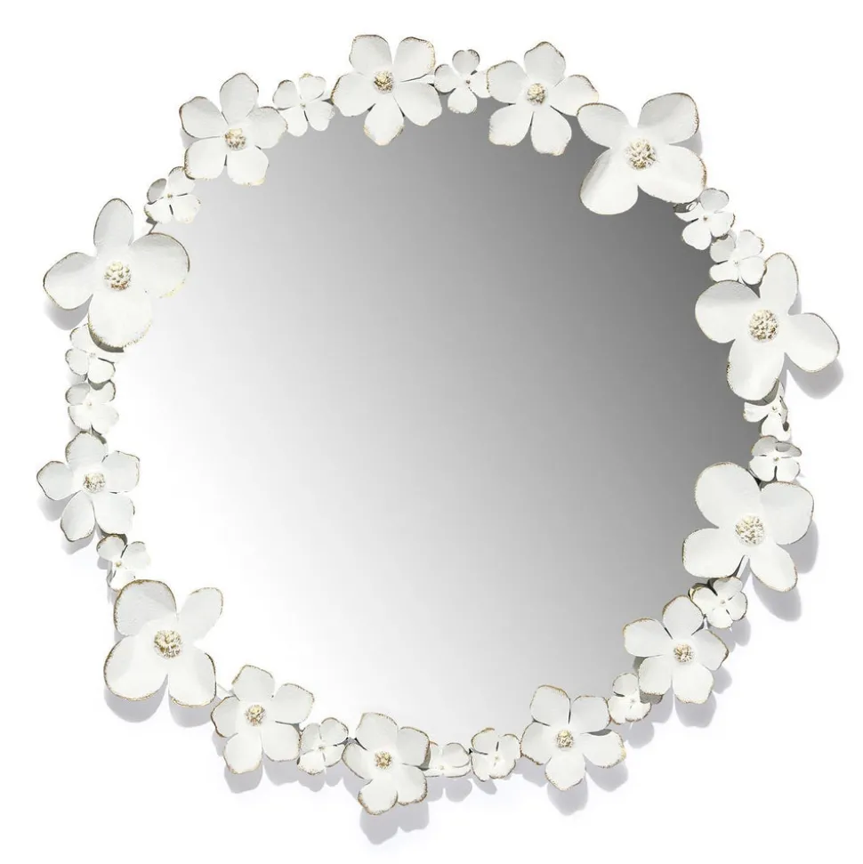 Started in a couple’s Westchester home in 1969, Two’s Company is a single destination for a wide range of stylish contemporary gifts, homewares, and accessories. From chinoiserie dish collections to accents for the sofa, the brand’s offerings are once sophisticated and accessible, making it an ideal gifting source for weddings, babies, new homes, birthdays, and more. Step into a whimsical world with the roung Flowers Round Hand-Crafted Wall Mirror. This stunning piece features delicate floral accents that bloom around a perfectly circular mirror. Hand-crafted with care, this mirror is made from a combination of MDF, metal sheet with each flower cut and attached to the base by hand. The mirror is then finished with a soft white patina creating a hand made effect.