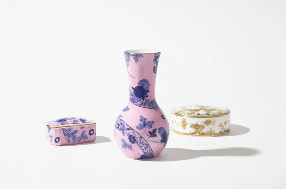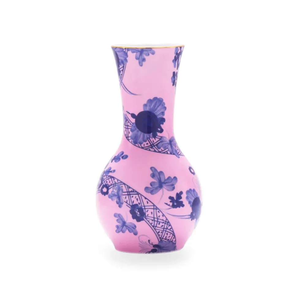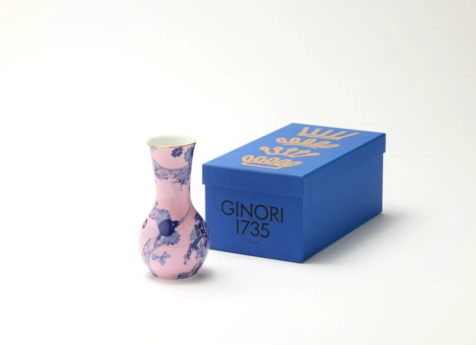 For nearly 300 years, Ginori 1735 has intertwined manufacturing excellence and timeless elegance from the family‚ estate in Doccia, Tuscany. Through the Baroque and romanticism, into the modern era‚guided by creative director Gio Ponti‚and beyond, the storied tableware and home decor brand‚ focus remains the same: turning porcelain into pure beauty. Embellished with the Azalea pattern and iconic gold trim, the charming pink Flower Vase in Azalea is ideal for enhancing home spaces and accentuating the beauty of any room. Used as a centerpiece in the dining room or as a designer ornament at the entrance to the home, this pink vase can be filled with flowers, decorative branches or simply left empty to create a minimalist and sophisticated atmosphere.