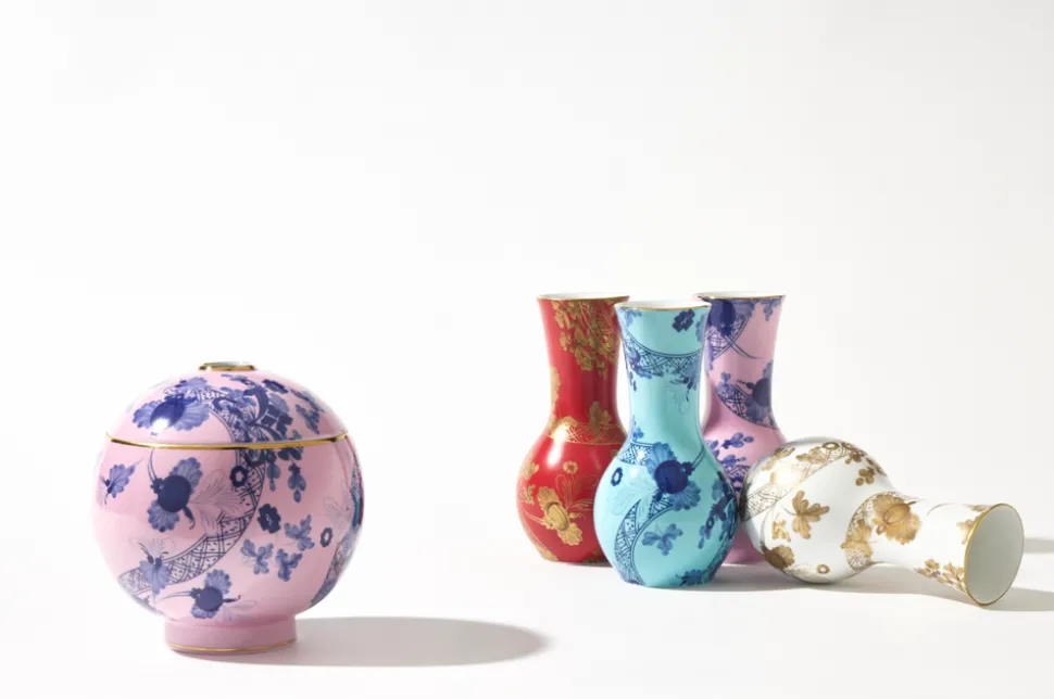 For nearly 300 years, Ginori 1735 has intertwined manufacturing excellence and timeless elegance from the family‚ estate in Doccia, Tuscany. Through the Baroque and romanticism, into the modern era‚guided by creative director Gio Ponti‚and beyond, the storied tableware and home decor brand‚ focus remains the same: turning porcelain into pure beauty. Embellished with the Iris pattern and iconic gold trim, the charming pink Flower Vase in Iris is ideal for enhancing home spaces and accentuating the beauty of any room. Used as a centerpiece in the dining room or as a designer ornament at the entrance to the home, this pink vase can be filled with flowers, decorative branches or simply left empty to create a minimalist and sophisticated atmosphere.