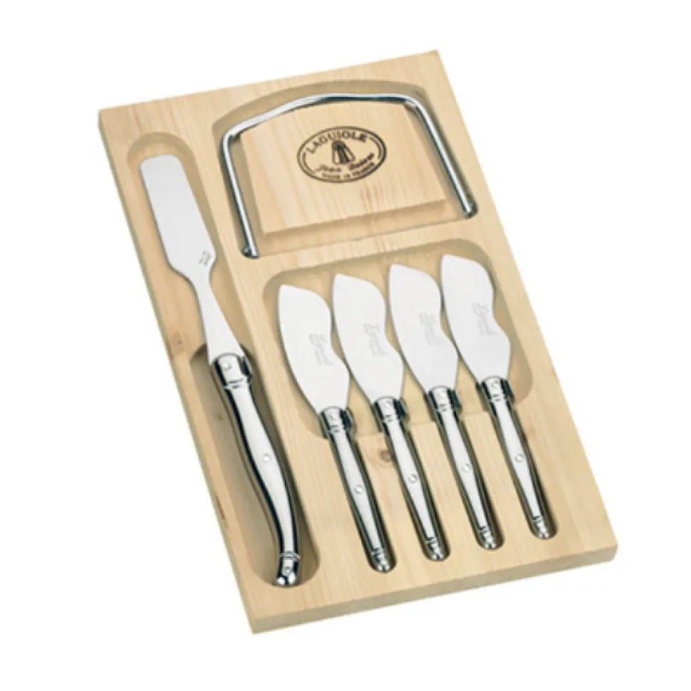 The Jean Dubost family has crafted renowned, high-quality artisan knives since 1920. Trusted in kitchens and restaurants throughout France, the legendary Laguiole tradition has now gone global. This foie gras set includes six stainless steel knives designed for effortless slicing and serving of delicate pâtés and terrines. Expertly crafted through over 25 meticulous production steps and finished with the signature Laguiole bee—a symbol of Napoleonic heritage—these knives embody precision and elegance. A refined addition to any connoisseur’s collection.