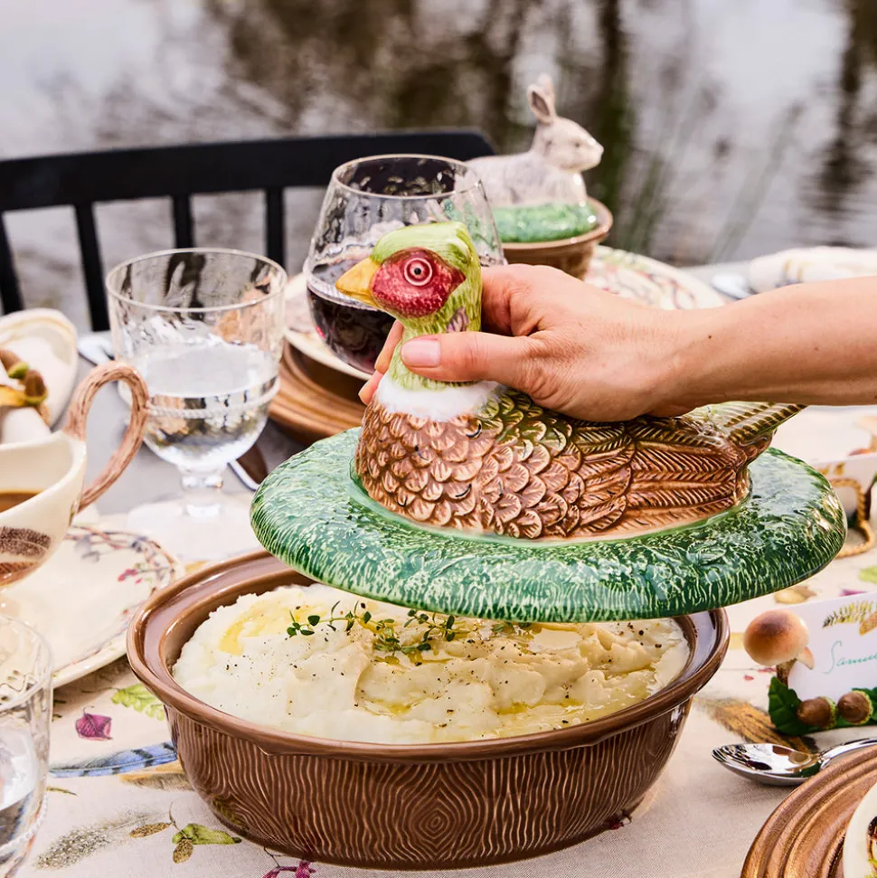 As newlyweds and self-proclaimed romantics, Capucine and David Gooding founded Juliska in 2001 with a small collection of mouth-blown glasses. Today, it’s the tableware and home brand every good hostess needs to know. The Forest Walk Pheasant Baker with Lid in Multi elevates oven-to-table serving with woodland charm, featuring a beautifully sculpted and hand-painted pheasant perched atop a ceramic base with a rich woodgrain motif. Perfect for showcasing stuffing, casseroles, or apple crumble, it’s an heirloom-worthy centerpiece for festive gatherings.