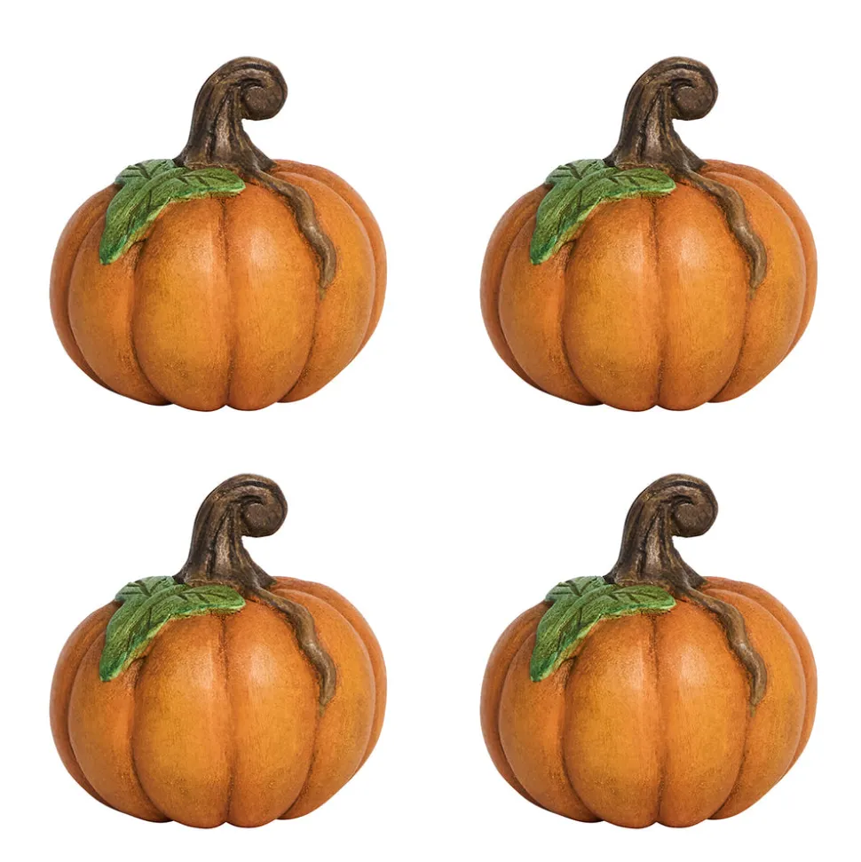 Set of four pumpkin-shaped place card holders. From Juliska’s Forest Walk Collection. Gift boxed.