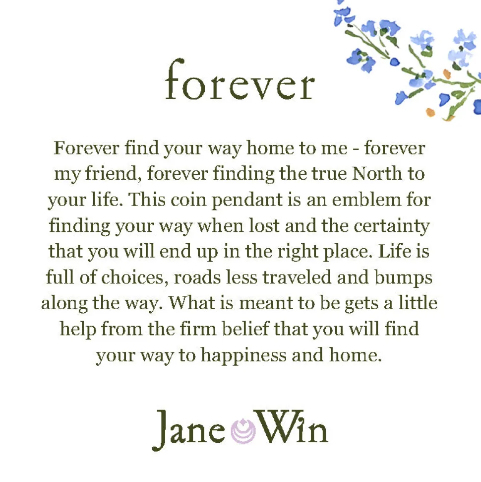 Jane Win’s collection of eight amulets symbolize abundance of positivity, strength, hope and luck, and are shaped to resemble antique coin jewelry. An amazing gift to memorialize milestone moments, or just the perfect eye-catching accessory for a night out, these pieces are worth more than their weight in gold. Find your forever, with the Forever JW Small Pendant Coin Necklace’s true North design. So you always know where you’re going, and end up where you’re meant to be.