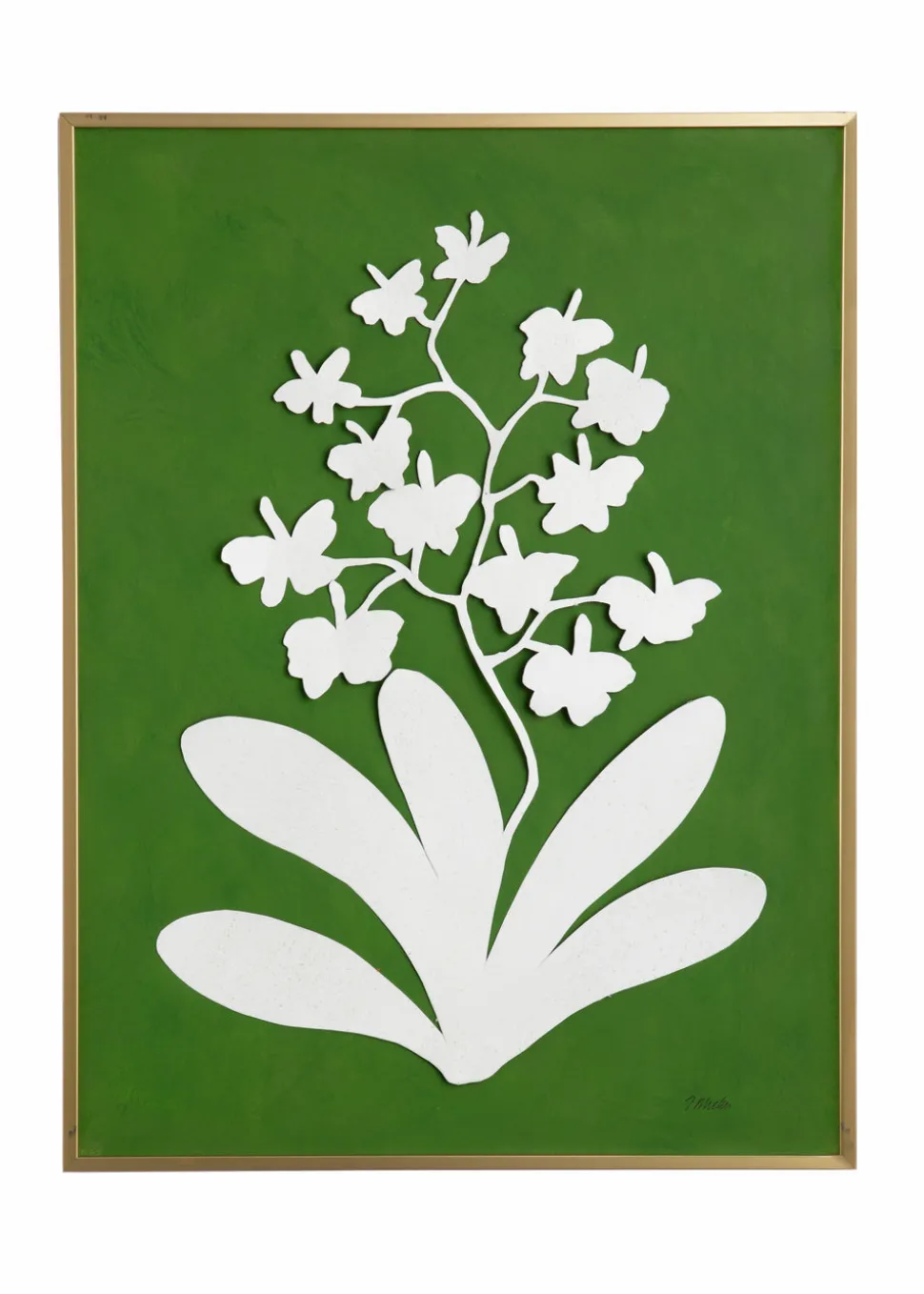 A former art restorer, Tommy Mitchell began creating his line of floral-inspired art installations for private clients, which led to his line of homewares. Working with a combination of copper, steel, paint, and gold leaf, and a dedicated team of artisans from his North Carolina studio, his hand-made, signed works are renowned for their artistic quality and singular beauty. Placid and thoughtful, decorous yet profound, the Framed Orchid Study Gold Frame Orchid #4 is a subtle, yet remarkable addition to any room, home, or office.
