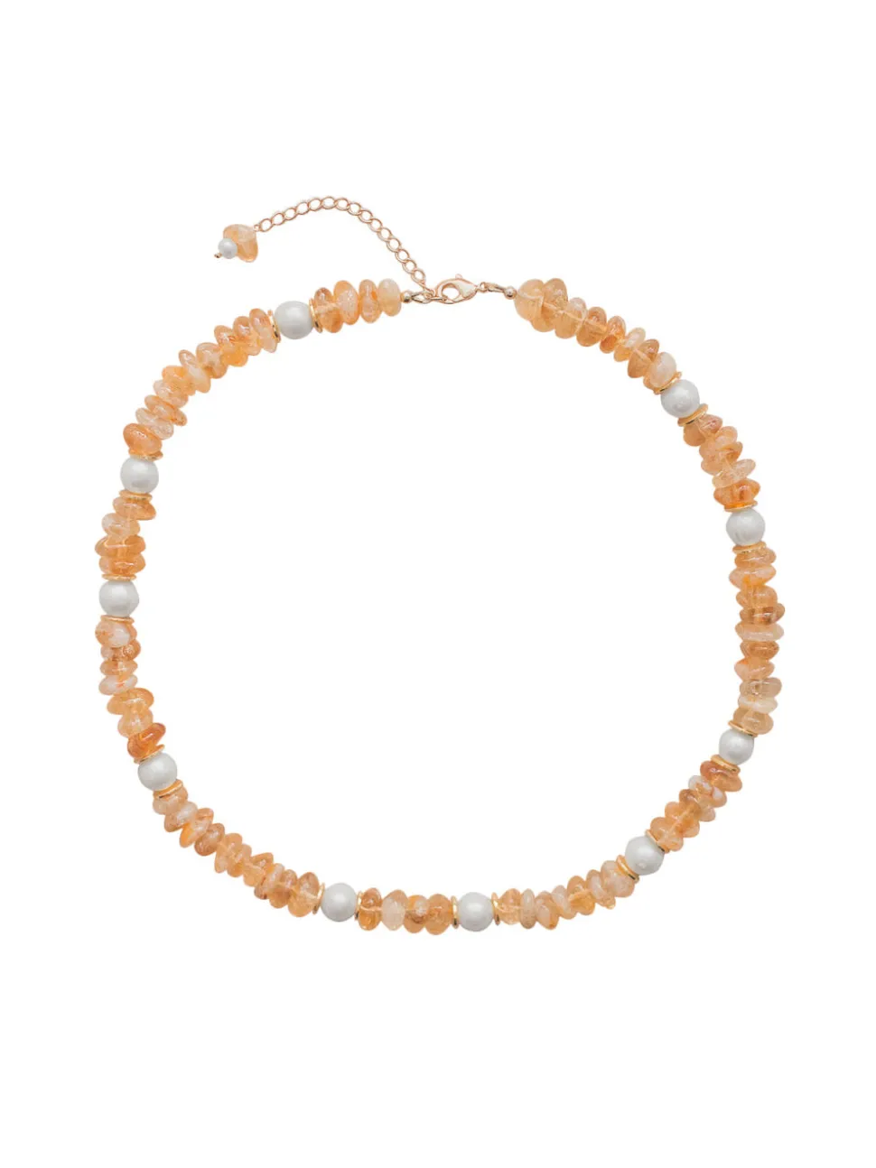 Citrine gemstones and freshwater pearls. Gold-filled lobster closure. Handmade in Newport, Rhode Island.