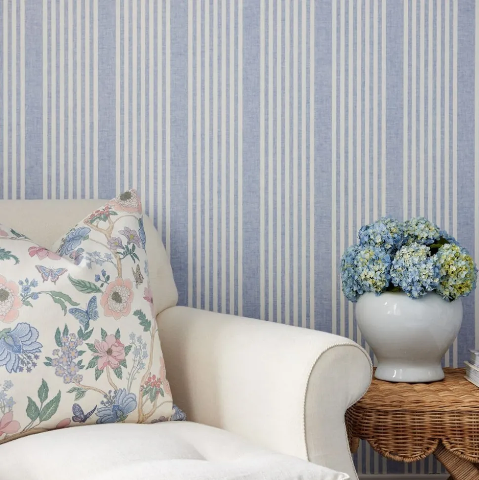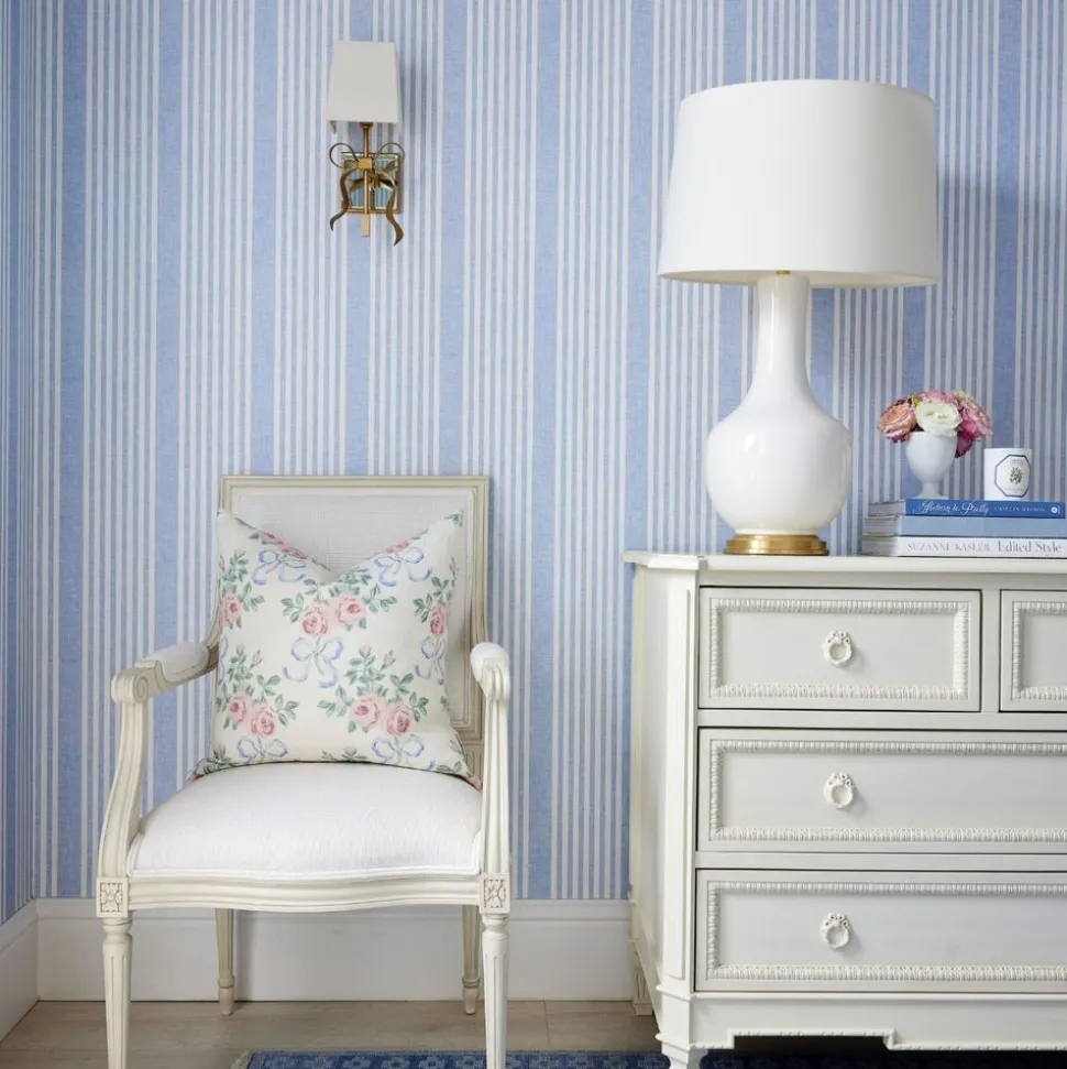 Founded on timeless design principles, Caitlin Wilson Design blends sophistication and uniqueness, embracing a variety of styles. The brand features textiles ranging from antique-inspired Persian rugs to custom pillows, wallpaper, lighting, furniture, and more. With a focus on pattern and color, Caitlin Wilson Design creates distinctive, signature interiors that bring out the full potential of every space. The French Linen Stripe Wallpaper adds a classic French Blue Stripe pattern accent to any room with traditional style. Add the ideal tailored touch to your walls with this stripe that will remain impactful for many seasons to come.