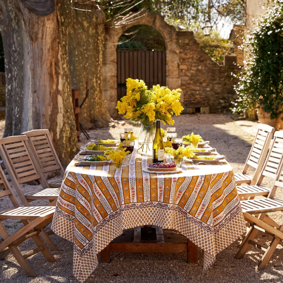 Idyllic landscapes, sumptuous colors, and the vibrant beauty of Southern France describes Couleur Nature. This brand of hand-painted table linens aims to bring a Provençal sense of effortlessness, rich culture, and joie de vivre to your life and home—no matter where you live. The French Tablecloth Avignon in Dijon and Blue features a delicately colored botanical design that evokes a sun-kissed splendor to your table. Named after the French city famed for its rich cultural agency, this high-quality piece is a must-have for dine-in memories. An elegant addition to any tablescape.