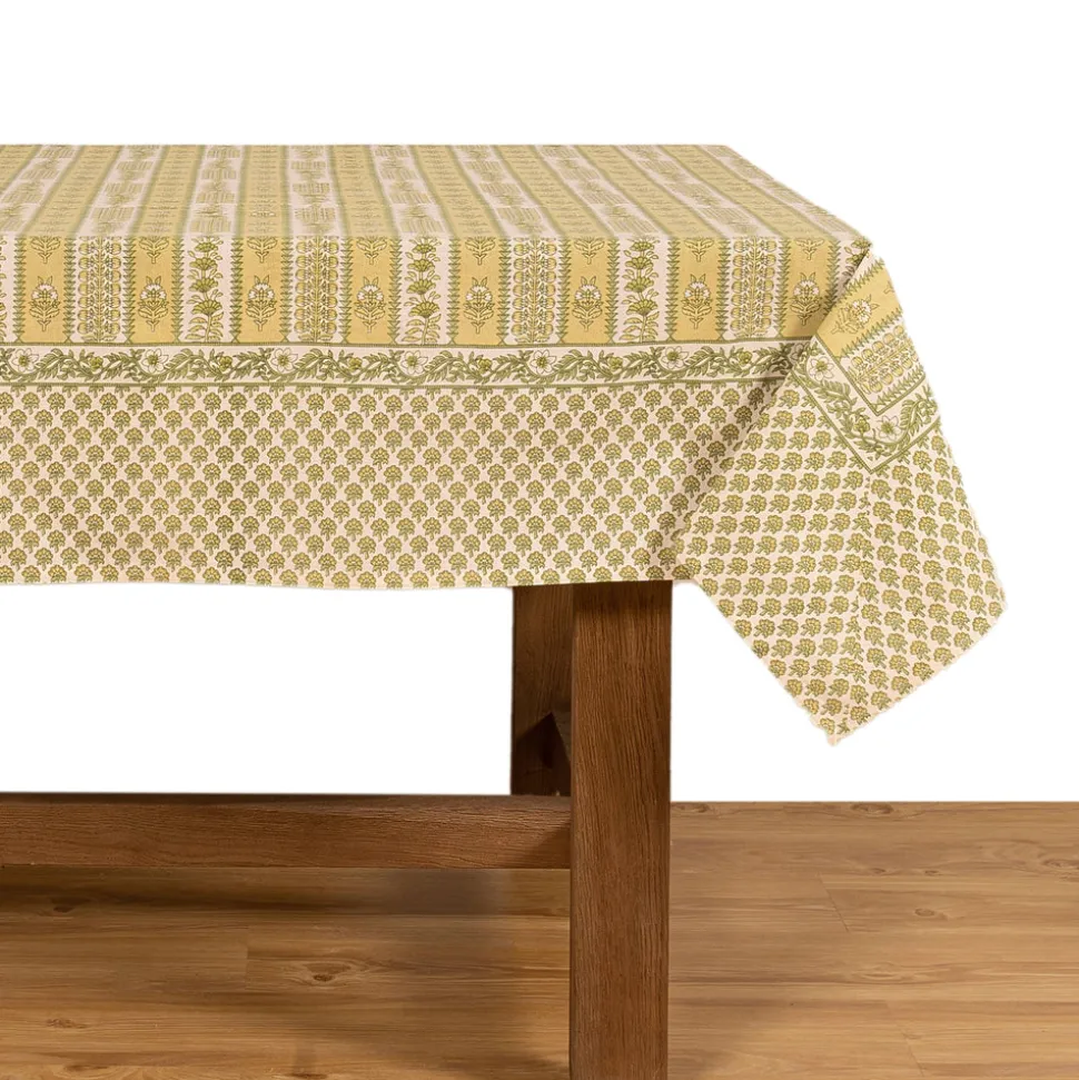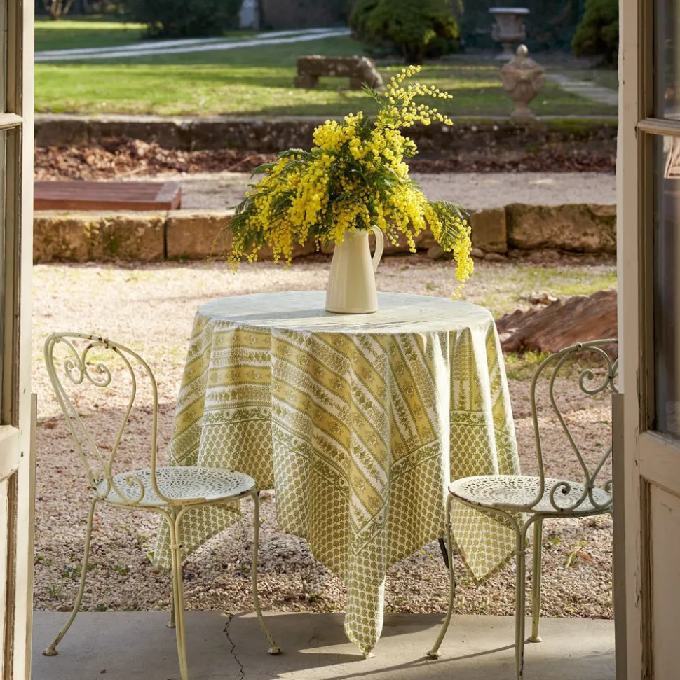 Idyllic landscapes, sumptuous colors, and the vibrant beauty of Southern France describes Couleur Nature. This brand of hand-painted table linens aims to bring a Provençal sense of effortlessness, rich culture, and joie de vivre to your life and home—no matter where you live. The French Tablecloth Avignon in Pistache features a delicately colored botanical design that evokes a sun-kissed splendor to your table. Named after the French city famed for its rich cultural agency, this high-quality piece is a must-have for dine-in memories. An elegant addition to any tablescape.