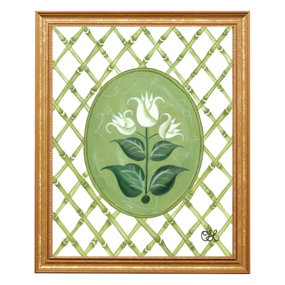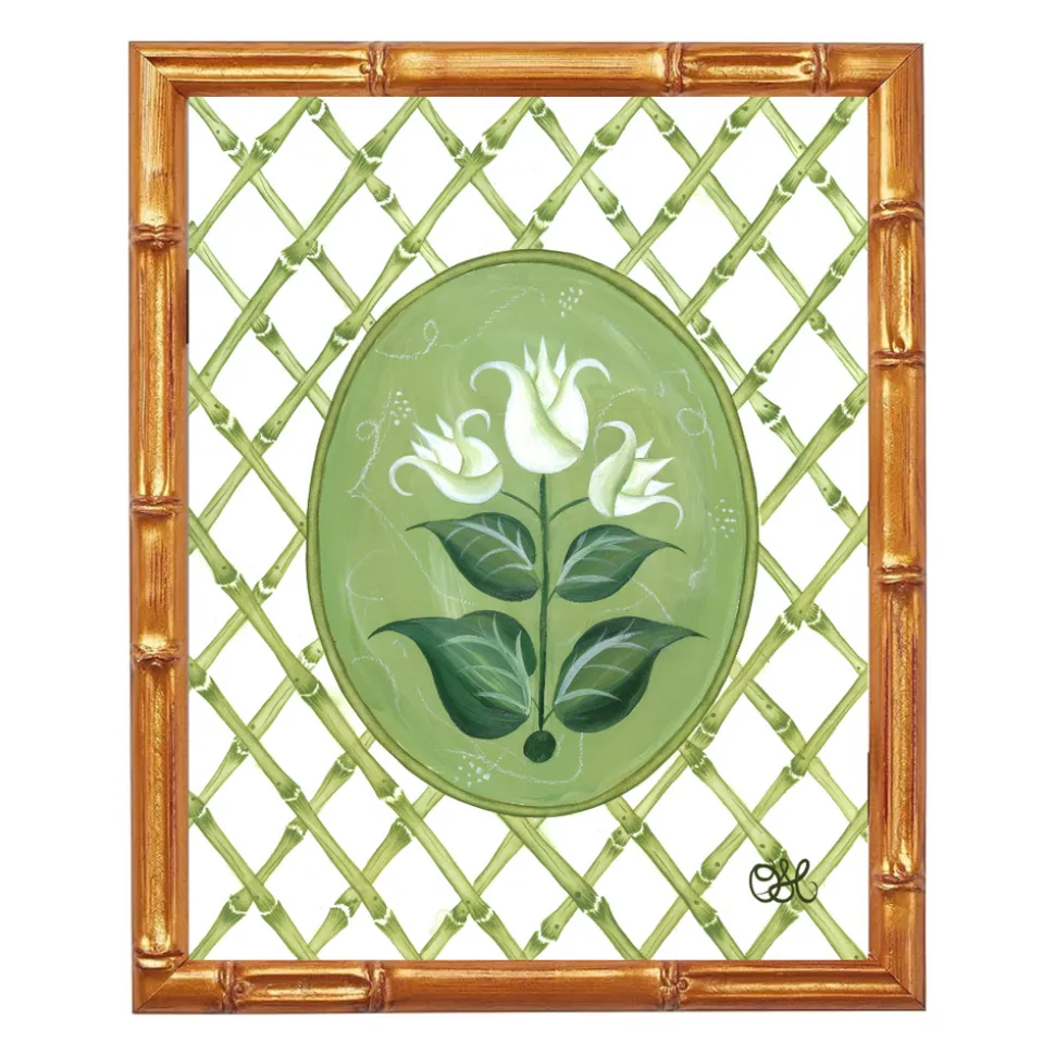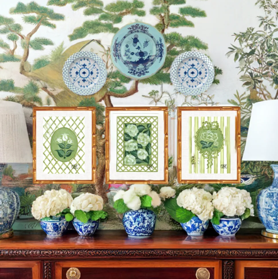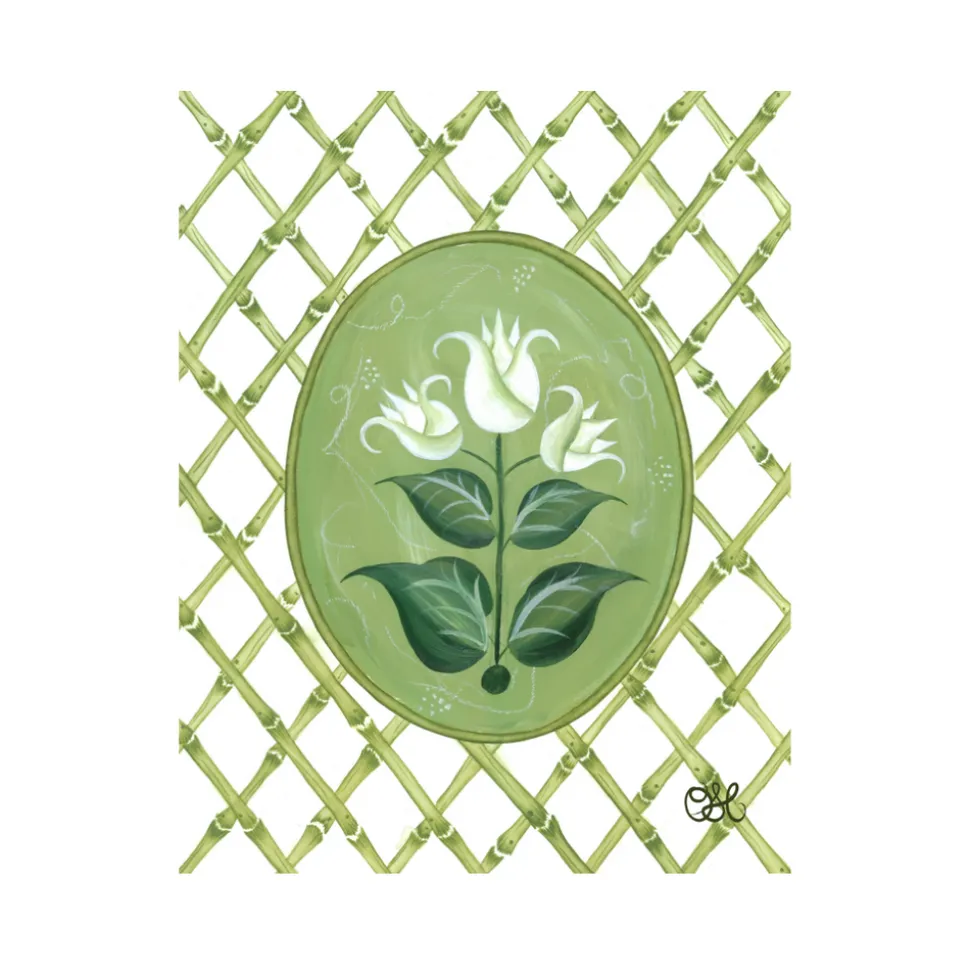 Inspired by the whimsically delicate beauty of chinoiserie, Heather Tamburello began creating her own designs while decorating her newlywed home. Today, she brings that passion to Oh So Lovingly, offering heirloom-quality originals and prints that blend timeless artistry with romantic charm. The French Tulips En Vert captures the elegance of botanical florals through fresh green tones and refined detail, drawing inspiration from the English countryside’s grandest greenhouses. This exclusive design infuses interiors with nature’s beauty and a touch of timeless sophistication.