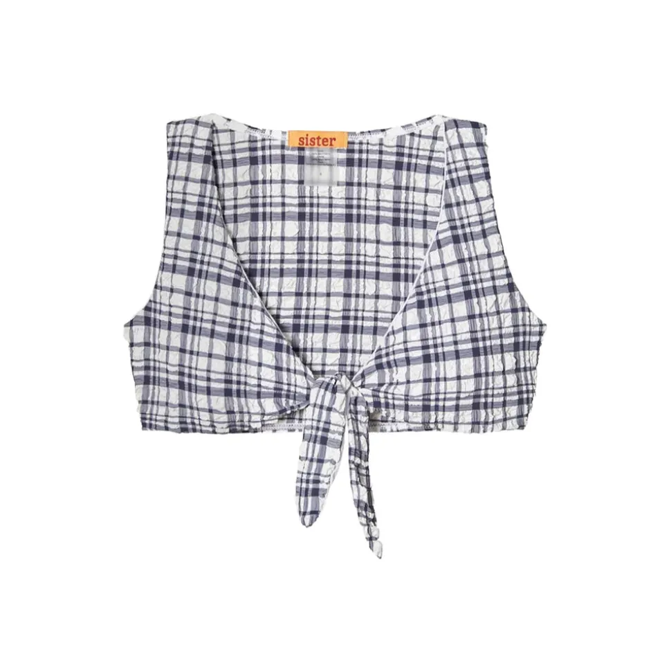 Michelle Marie, founder of Sister Swim, built her brand around her vision of swimwear’s fundamentals: style, innovation, comfort, and confidence. Boasting clean lines, precise measurements, and unique prints, her collections do not stand out from the wearer but instead accentuate her natural beauty. The Frenchie Top in Navy White offers a cropped t-shirt feel with its tie front detailing and full shirt style back. Pair with the coordinating bottom for swim, or with your favorite skirts and shorts for an effortless, off-duty post beach look.