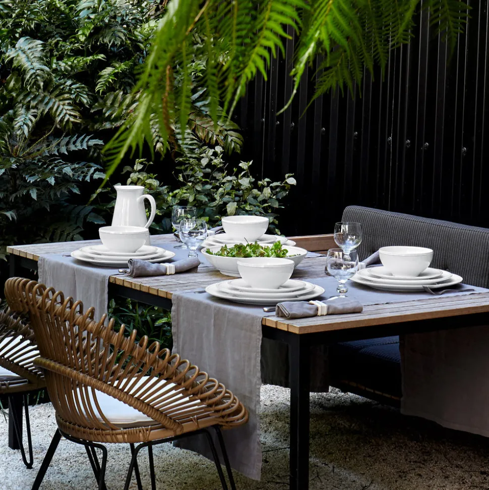 Costa Nova originated in a small Portuguese fishing village by the Atlantic Ocean. Carrying the name and heritage of Portugal worldwide, the brand creates fine stoneware collections that blend design, quality, and exceptional ceramic craftsmanship. The Friso Collection Dinner Plates in White, Set of 6, exemplify effortless sophistication with their clean silhouette and hand-painted grooved rim—an elegant essential for both everyday dining and special occasions.