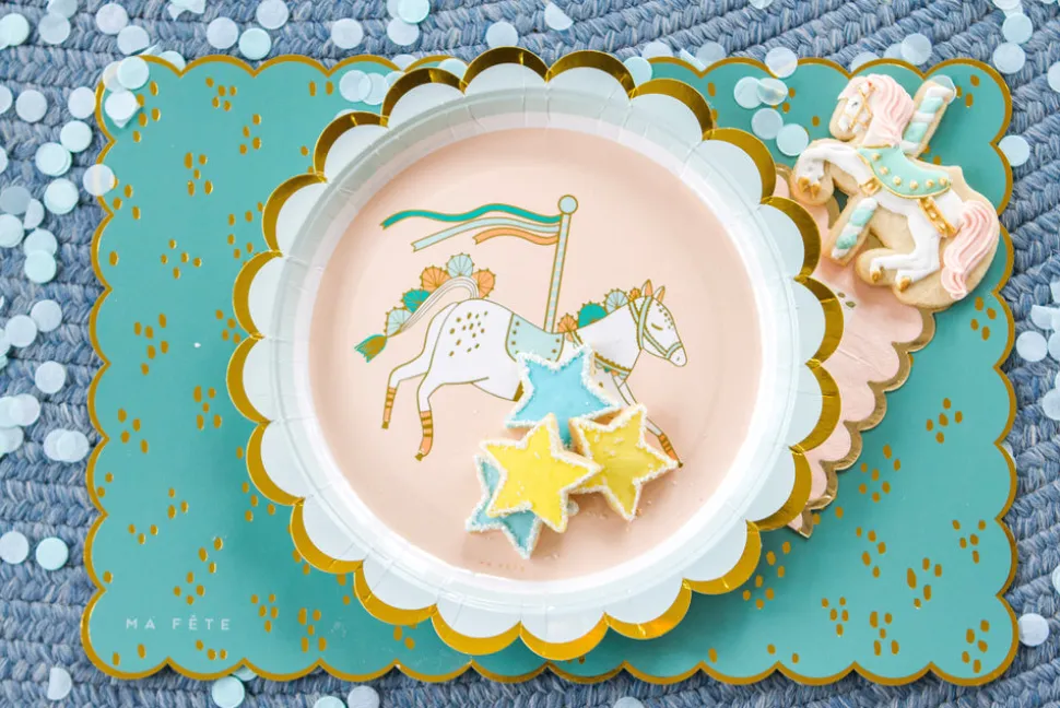A mom with two young children, Anna Bacon found herself bored with the same old party themes, which is how Ma Fête (“My Party” in French) was born. She creates boxes of matching party materials—plates, cups, napkins and more—with fun, kid-friendly motifs, helping parents throw the most memorable parties, with minimal effort. The Fun Fair series brings with the fairgrounds to them, with the Fun Fair Platters creating an incredible display of party treats, with elegant scalloped edges to seamlessly match the dinner and dessert plates.