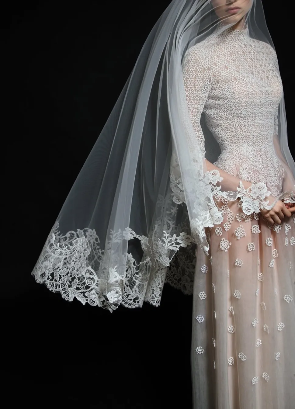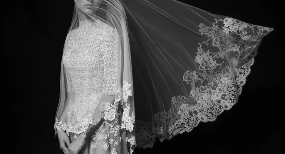 Driven by a sophisticated aesthetic, Monvieve represents a sublime beauty that stands apart from the crowd. Finding inspiration in a client that expects a certain exclusivity in her bridal attire, the unforgettable heirloom veil collection expresses luxury in exquisite fabrications, bespoke workmanship, and definitive style. Rarified and timeless, Monvieve draws upon the industry’s premium offerings with magnificent heritage Chantilly from the finest French houses and custom silks developed in Como, Italy.