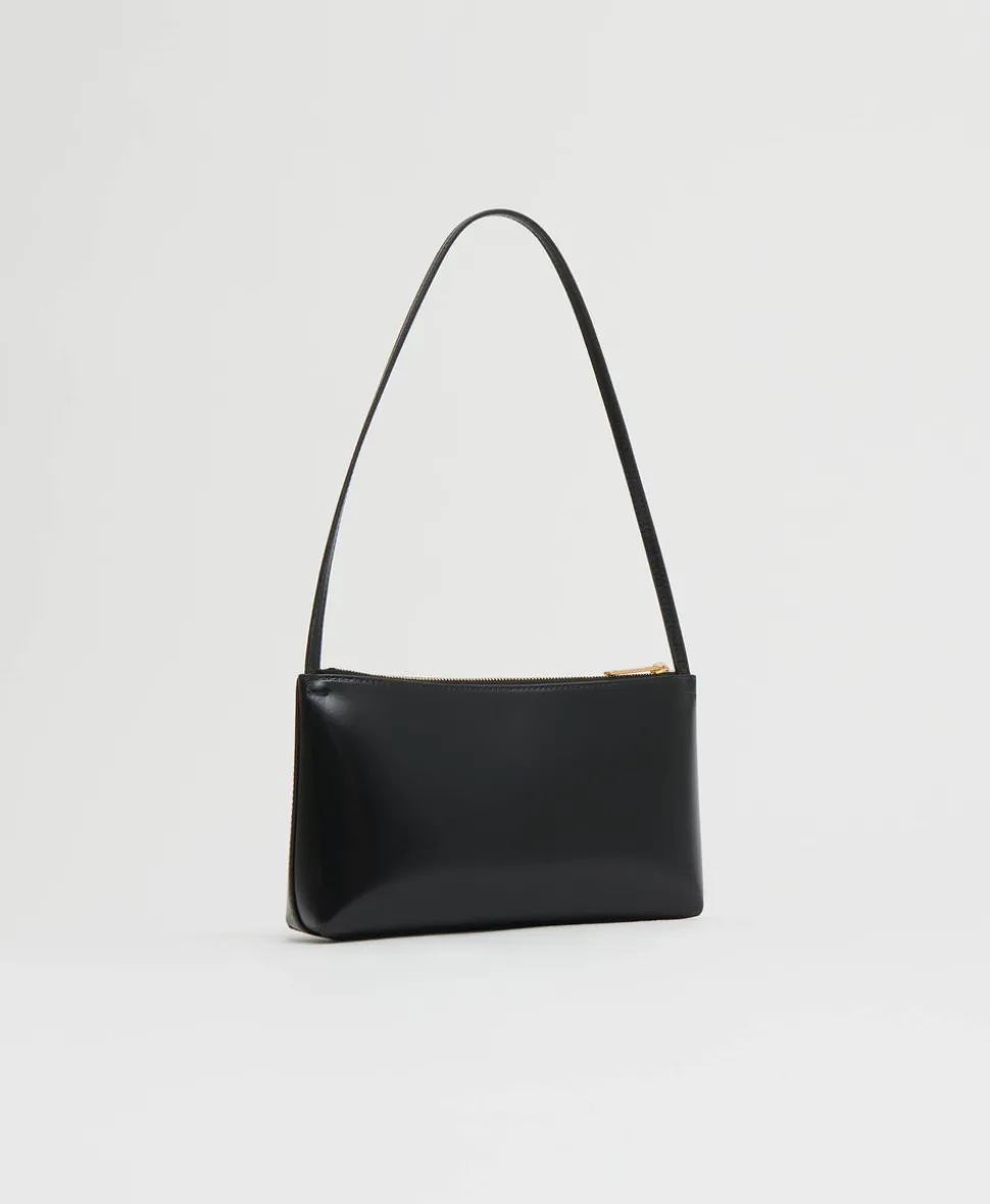 Founded in 2013, Mansur Gavriel redefines luxury through its distinctive approach to color and form. Born out of a passion for art and design, Rachel Mansur and Floriana Gavriel created two simple silhouettes—launching with just a bucket and tote. The brand’s designs, dreamt up in New York and crafted in Italy, continually challenge the notions of what expression can be. The Gaia Shoulder Bag in Black & Flamma is sleek and minimalist—an effortless underarm companion crafted from glossy Italian Spazzolato leather with a slender strap and zipper closure.