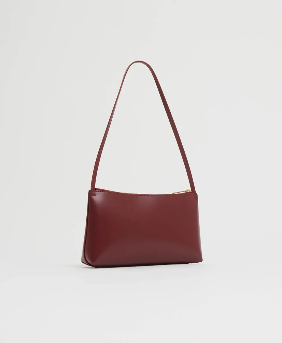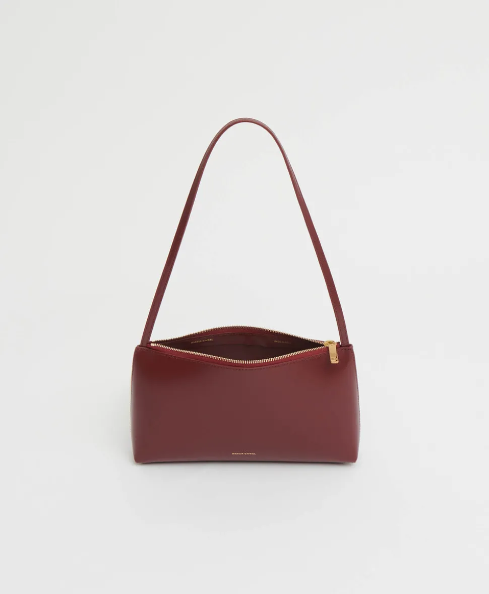 Founded in 2013, Mansur Gavriel redefines luxury through its distinctive approach to color and form. Born out of a passion for art and design, Rachel Mansur and Floriana Gavriel created two simple silhouettes—launching with just a bucket and tote. The brand’s designs, dreamt up in New York and crafted in Italy, continually challenge the notions of what expression can be. The Gaia Shoulder Bag in Claret is sleek and minimalist—an effortless underarm companion crafted from glossy Italian Spazzolato leather with a slender strap and zipper closure.