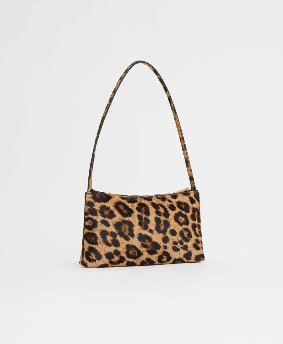 Founded in 2013, Mansur Gavriel redefines luxury through its distinctive approach to color and form. Born out of a passion for art and design, Rachel Mansur and Floriana Gavriel created two simple silhouettes—launching with just a bucket and tote. The brand’s designs, dreamt up in New York and crafted in Italy, continually challenge the notions of what expression can be. The Gaia Shoulder Bag in Leopard is sleek and minimalist—an effortless underarm companion crafted from soft calf hair leather with a slender strap and zipper closure. Fits iPhone Max and smaller.