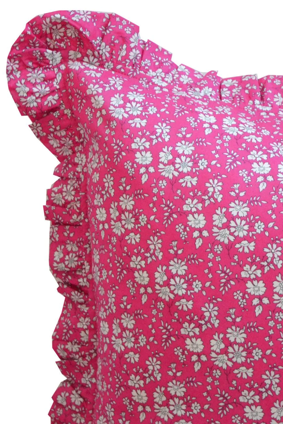 Coco & Wolf is a luxury bedding and lifestyle brand using premium Liberty fabric. Handmade in a Somerset, this collection of clean and contemporary homeware and table linens create stylish heirlooms for years to come. Made with Liberty’s signature Tana Lawn™ cotton, the Gathered Edge Pillowcase Made With Liberty Fabric in Capel Fuchsia is a silky soft pillowcase that is a true design statement that elevates your bed from spiritless to spectacular, effortlessly. The luxurious and abundant ruffle edges add frivolity and fun, while the main body of the pillowcase fits your pillow snugly following the contours, with a concealed flap enclosure. Gathered edge pillowcases look stunning both on their own and when layered with other pillowcase types and prints, creating an elevated individual look every time.