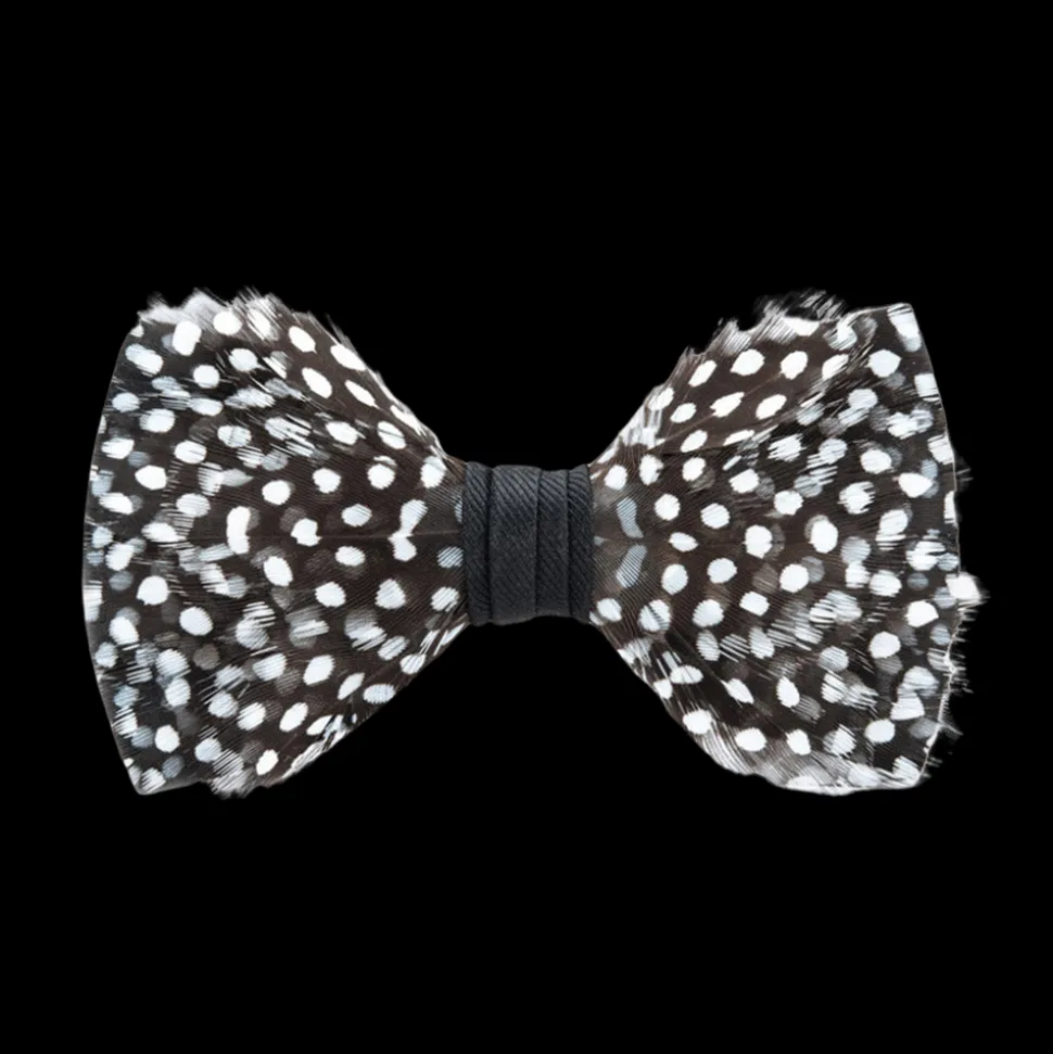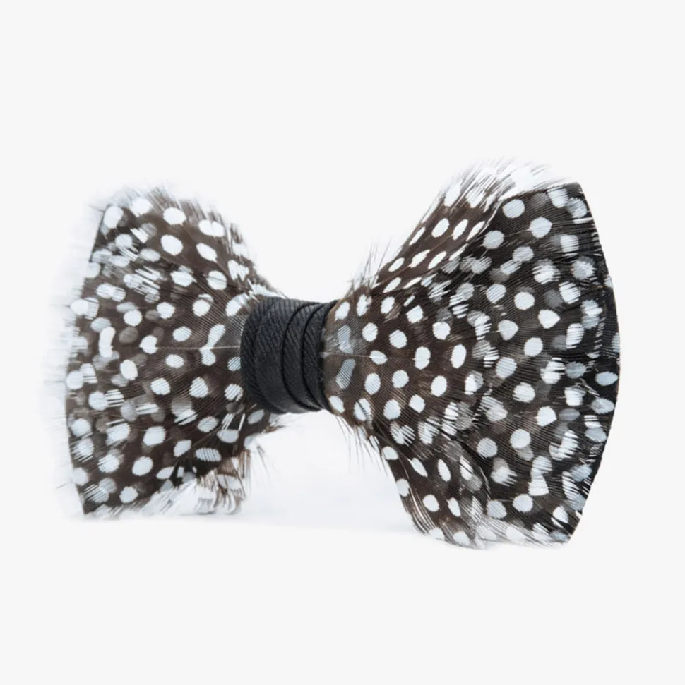 Brackish began with one feather bow tie designed by Ben Ross and gifted to his groomsman, Jeff Plotner. Since its inception, the brand has blossomed into a full line of men’s and women’s accessories designed and handcrafted in Charleston, South Carolina with each piece focused on honoring the beauty found in nature. The Gatsby Bow Tie was named after the fabulously loud swinging 20’s. With the fluffed texture of the feathers, this piece creates dimension and embodies the true spirit of its classic literary name. Made with black and white guinea feathers.