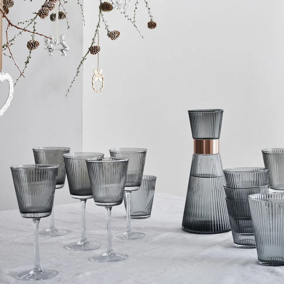 Family-owned, the Danish company Rosendahl works to preserve iconic Danish design, emphasizing its minimalist ideal, utter practicality, and everyday beauty. The brand’s timeless masterpieces and modern classics, come to live in home and tablewares can withstand daily use and can can be passed on through generations. Mouth-blown in a beautiful and high-quality dark grey smoke colored glass with grooves, the GC Nouveau Tumbler in Smoke, Set of 4 is a functional and stackable tumbler works for both casual and fancier occasions.