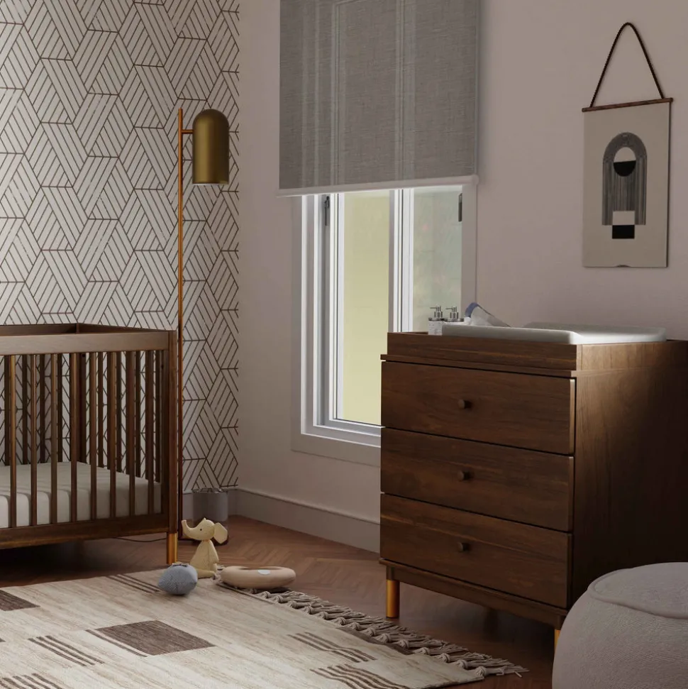 Designed in Los Angeles, babyletto creates stylish, modern nursery furniture with a focus on safety, sustainability, and intuitive design. For over a decade, the brand has empowered parents to craft spaces that reflect their values and individuality. The Gelato 3-Drawer Dresser with Brushed Gold Feet in Natural Walnut is a playful yet polished take on mid-century style. With a removable changing tray and customizable design, this versatile piece evolves from nursery staple to everyday storage essential.