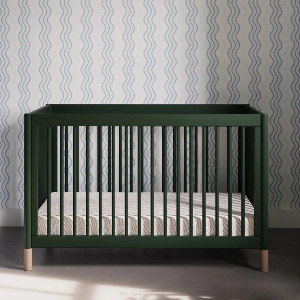 Designed in Los Angeles, babyletto creates stylish, modern nursery furniture and essentials with a focus on safety, sustainability, and intuitive design. For over a decade, the brand has empowered parents to craft spaces that reflect their values and individuality. The Gelato 4-in-1 Convertible Crib in Forest Green with Vegan Blonde Leather Feet delivers Scandi-inspired charm and playful customization in a statement silhouette.