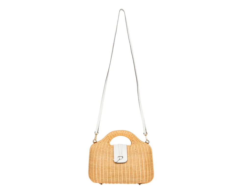 Rafe Totengco finds inspiration in architectural forms the world over for his exquisite minaudières and clutches. Born in the Philippines and based in New York city, Totengco weaves multi-cultural references into his carefully detailed accessories, which impart not only a sense of everyday glamour, but that of objects d’art. The Gen Top Handle in White & Natural is a cut-out handle clutch ideal for warm weather events. Hand-woven in natural fine wicker, with a white leather flap closure and a detachable leather shoulder strap, it’s at once sophisticated and utterly easy.