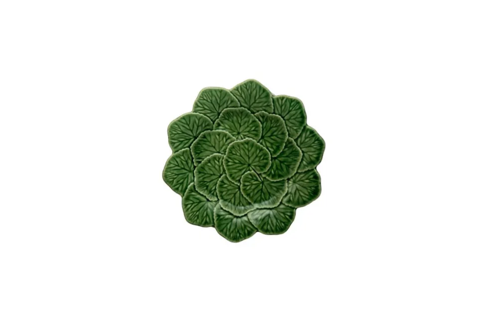 Named for the 19th century illustrator, sculptor and ceramicist, Bordallo Pinheiro continues the iconoclast’s legacy of unique art by applying ancestral manufacturing techniques and naturalistic motifs—inspired by Portugal’s flora and fauna—to versatile and decorative tabletop pieces. Inspired by the flowers that embellish balconies and gardens throughout the country, the Geranium Dessert Plate 22″ Green is an absolutely delightful way in which to encounter any the beginning, sides, salad or dessert course of any dining service.