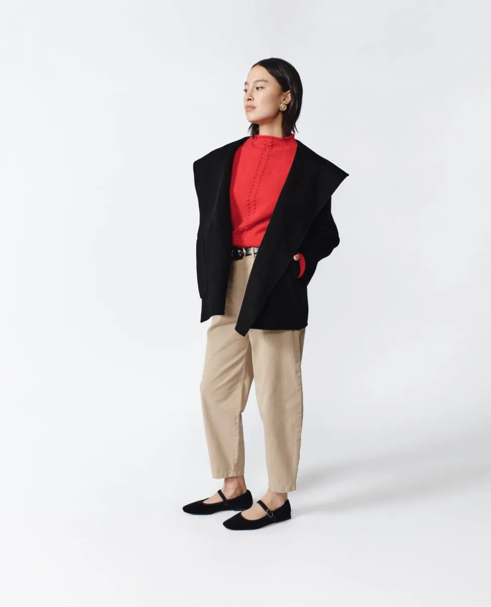 Sourcing its cashmere from wild goats indigenous to Mongolia’s Gobi Desert, Garin crafts apparel that is both eco-friendly and animal-friendly. While their pieces are cool, high quality, and long-lasting, every element is biodegradable, including the packaging, which supports the brand’s creed of “cashmere with a cause.” The Gia Cashmere Coat in Black, crafted from a delicious double-faced cashmere-wool blend, is the chic cropped topper you never new you needed. Luxuriously soft and incredibly warm, this piece features an oversized hood and oversized pockets.
