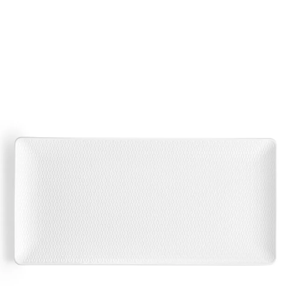For over 260 years, Wedgwood has produced timeless, eclectic stoneware and china that has graced the tabletops of kings, queens, and some of the finest dining rooms in the world. From its factory in Barlaston, England, the brand’s signature dishware and household items are thrown, modeled and decorated by artisans who spend a lifetime mastering their craft. The minimal Gio collection features an embossed geometric pattern and is designed to be used every day, being microwave and dishwasher safe to save on the hassle when cooking and cleaning up. The Gio Serving Tray Rectangular 12.6″ is an elevated, modern way to serve larger mains, an array of desserts, or salad for the table.