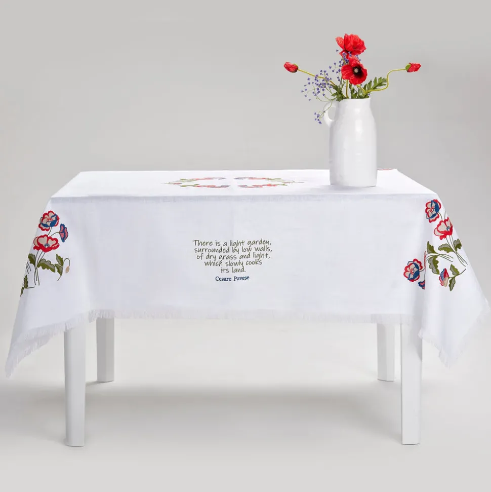 Cibelle embroiders the olive trees, vineyards, lemons, patterns and gardens of Puglia’s countryside to tell the stories of its landscapes and people through their table linens. Using 100% Italian linen and gorgeous embroideries, hand-crafted at every step, each Cibelle piece speaks to its founder Raffaella Gemiti’s mission to combine the craft, culture, and natural beauty of her homeland in unsurpassed table settings. Hand-embroidered with a coral design, the Pink Corallo Tablecloth provides an elegant basis for any meal, especially when paired with the matching napkins and placemats.