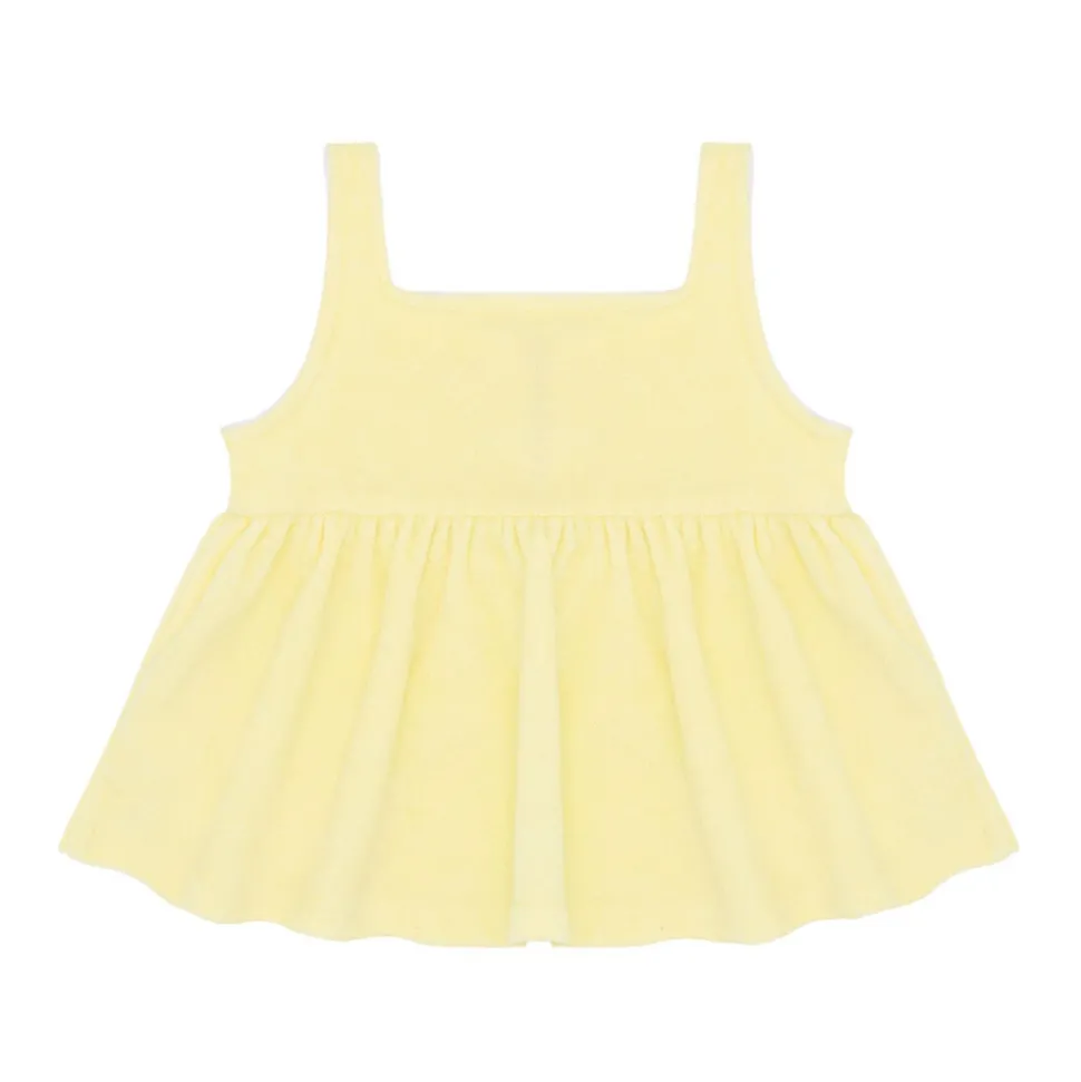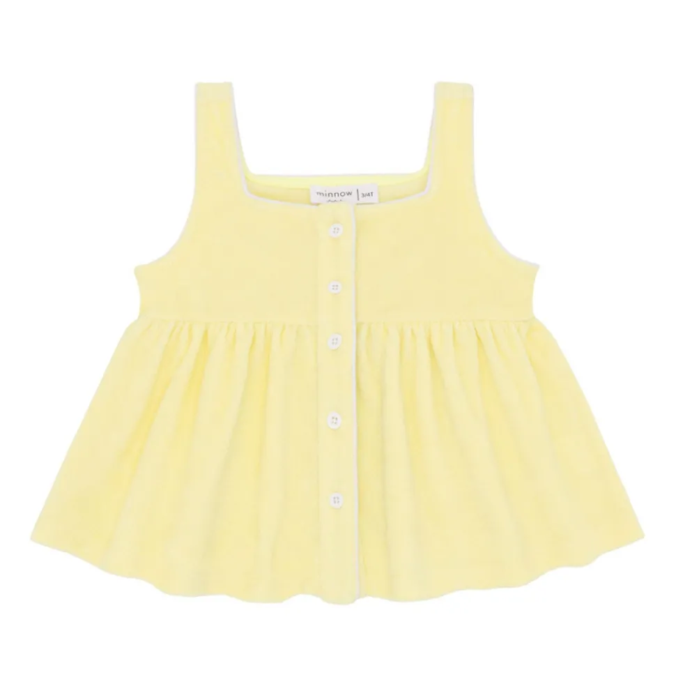 A family favorite for its clean lines and simple details, minnow creates pieces that are playful, polished, and thoughtfully designed for long days, sandy toes, and the wonderment of life on the shore. The Girls Banana French Terry Button Up Tanks is a sweet top for your girl’s wardrobe. Crafted from premium french terry, this piece is comfortable and soft with thoughtful details like front buttons and an airy silhouette.