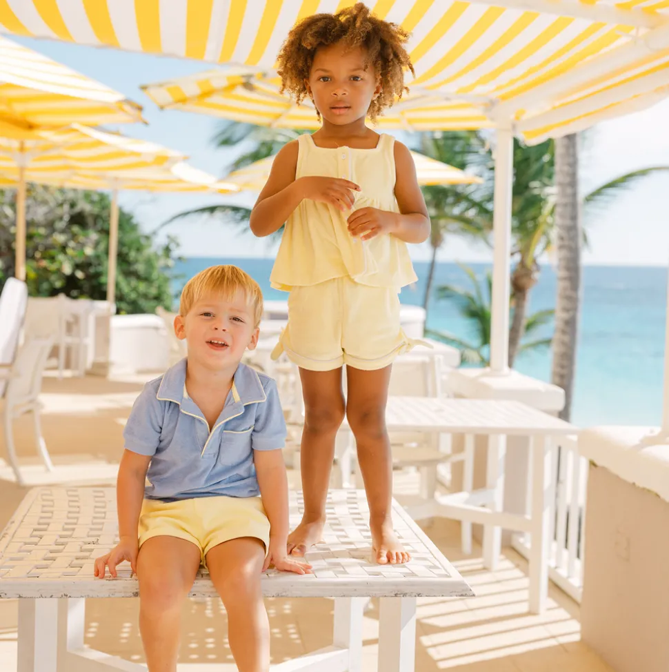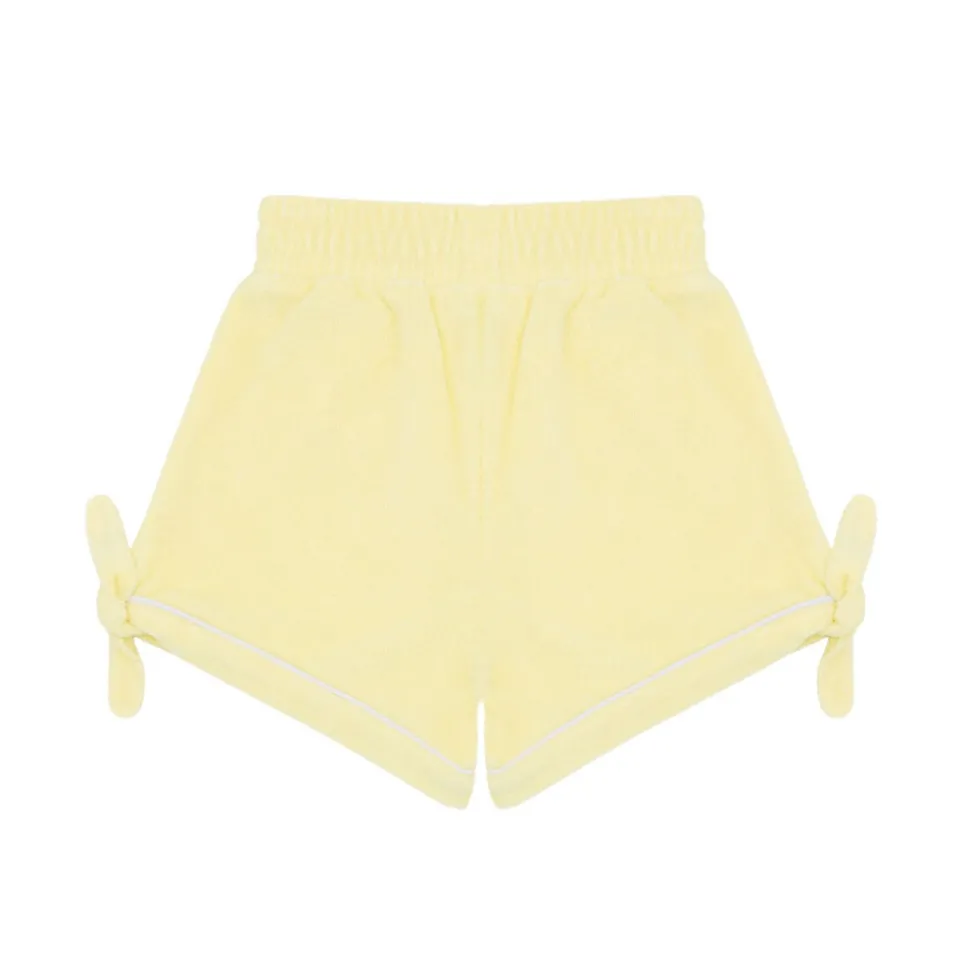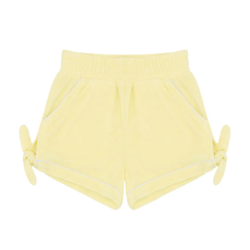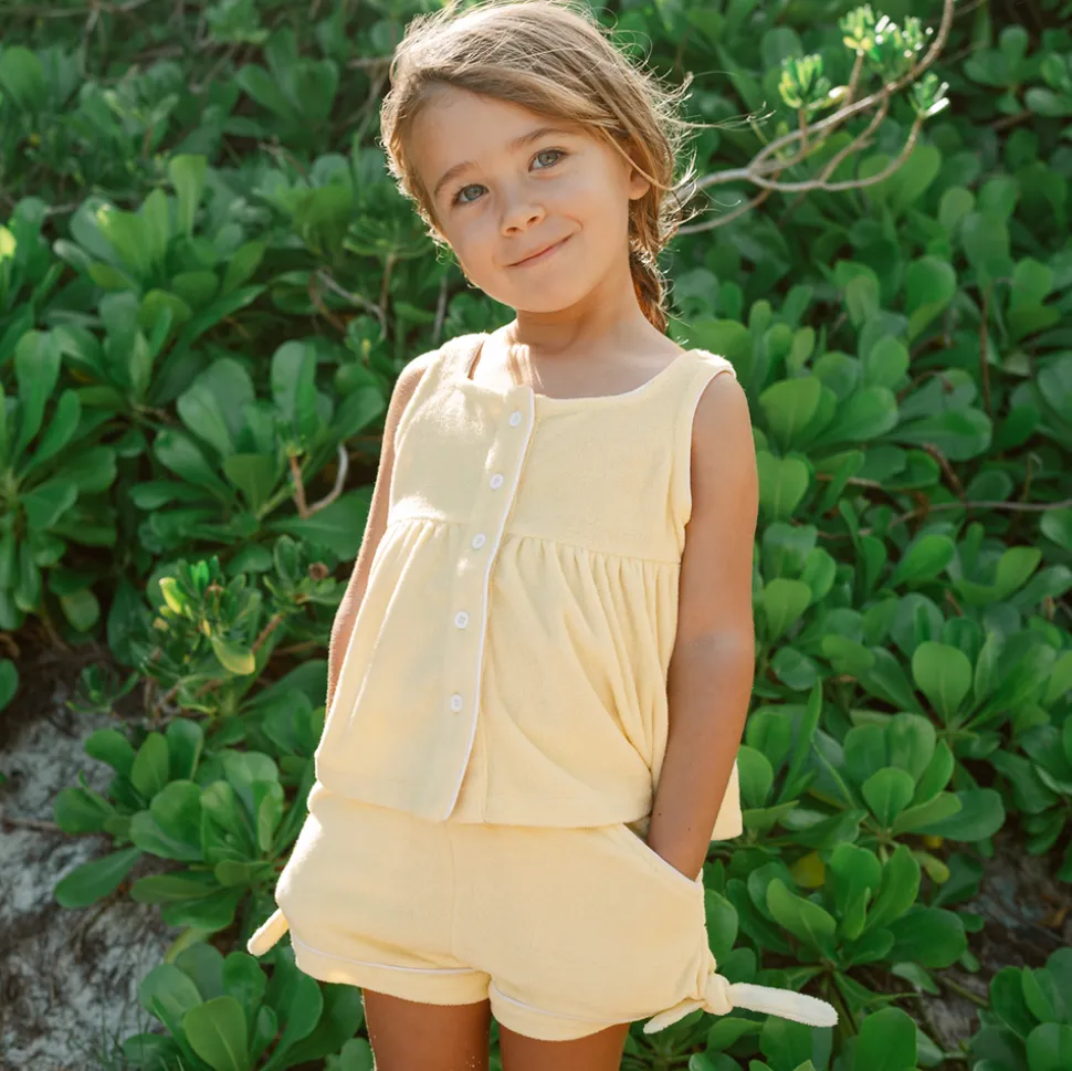 A family favorite for its clean lines and simple details, minnow creates pieces that are playful, polished, and thoughtfully designed for long days, sandy toes, and the wonderment of life on the shore. The elevated Girls Banana French Terry Tie Knot Short will seamlessly transition from post-swim to playtime. This bestseller designed in premium french terry with a relaxed fit (but still above the knee!) Features an elastic waist and ties for ultimate comfort.