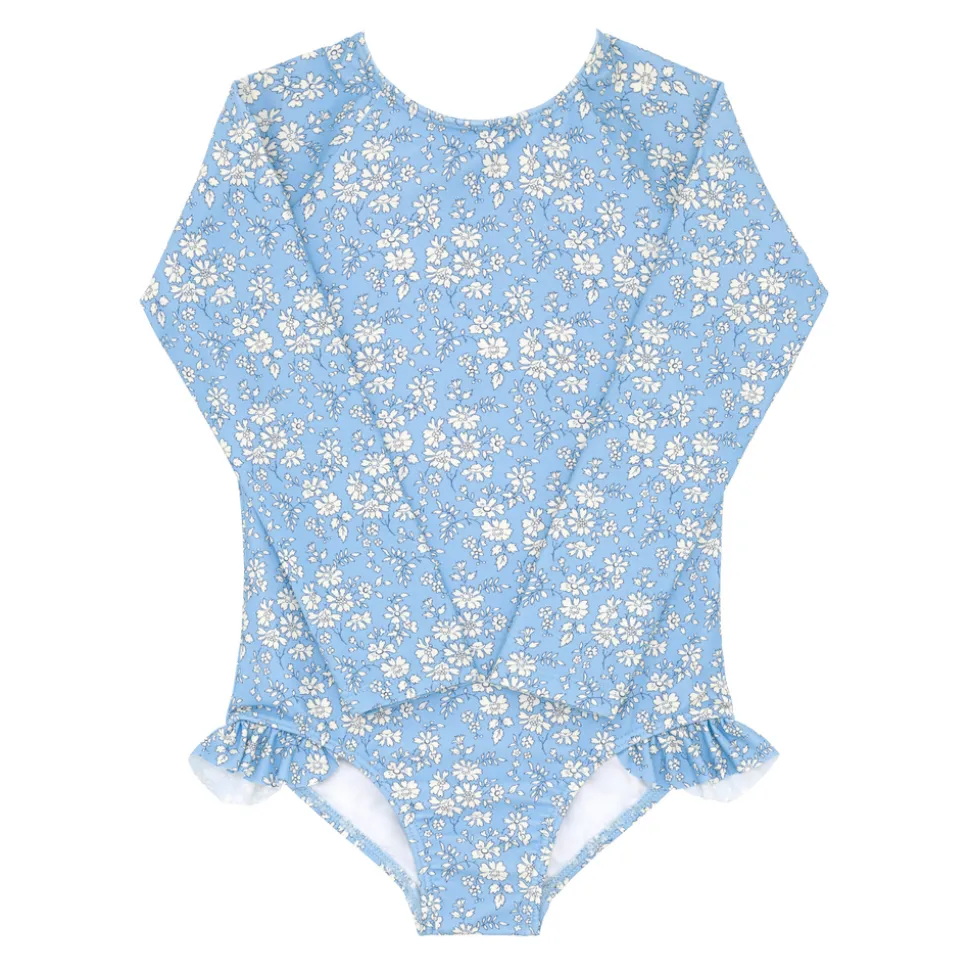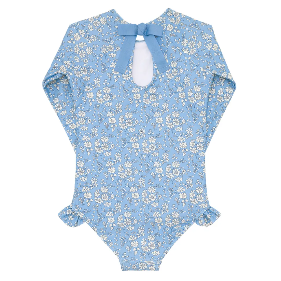 A family favorite for its clean lines and simple details, minnow creates pieces that are playful, polished, and thoughtfully designed for long days, sandy toes, and the wonderment of life on the shore. The Girls Capel Rashguard One Piece features sun-safe grosgrain ribbon back tie is fixed with a hidden button closure for easy changes. Designed in a soft and stretchy textured fabric, with the feminine ruffles details, this comfortable staple is oh-so sweet.