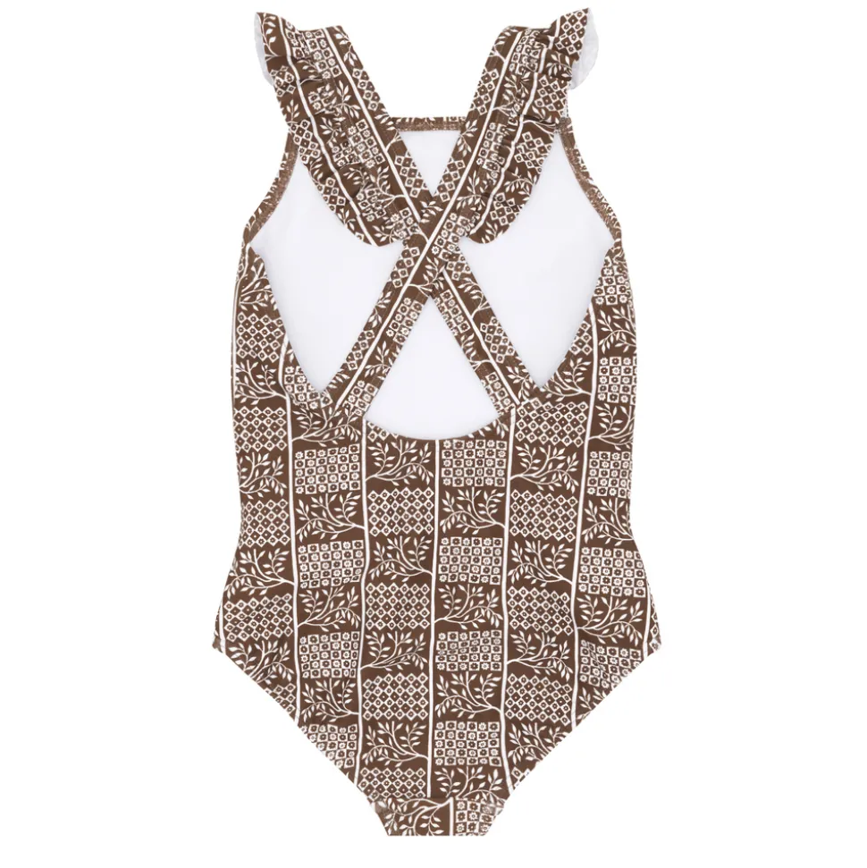A family favorite for its clean lines and simple details, minnow creates pieces that are playful, polished, and thoughtfully designed for long days, sandy toes, and the wonderment of life on the shore. The Girls Checker Tree Crossover One Piece features an exclusive print designed by artist Ellen Merchant. Detailed with ruffle straps with a feminine crossover back detail, it is fully lined for form and function in and out of the water—and ideal for long days in the sun.