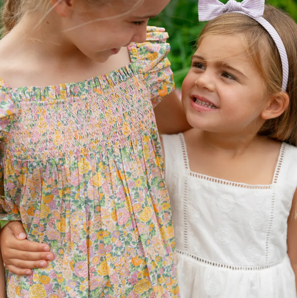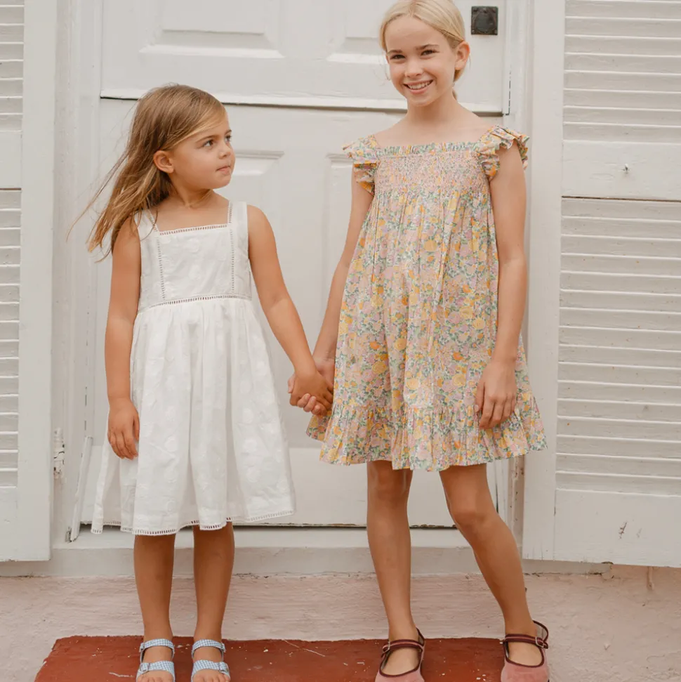 A family favorite for its clean lines and simple details, minnow creates pieces that are playful, polished, and thoughtfully designed for long days, sandy toes, and the wonderment of life on the shore. The Girls Elysian Day Smocked Tent Dress has a sweet square-neck smocked for comfort with a flowy silhouette. Ruffle straps add a feminine flair for any warm weather occasion.