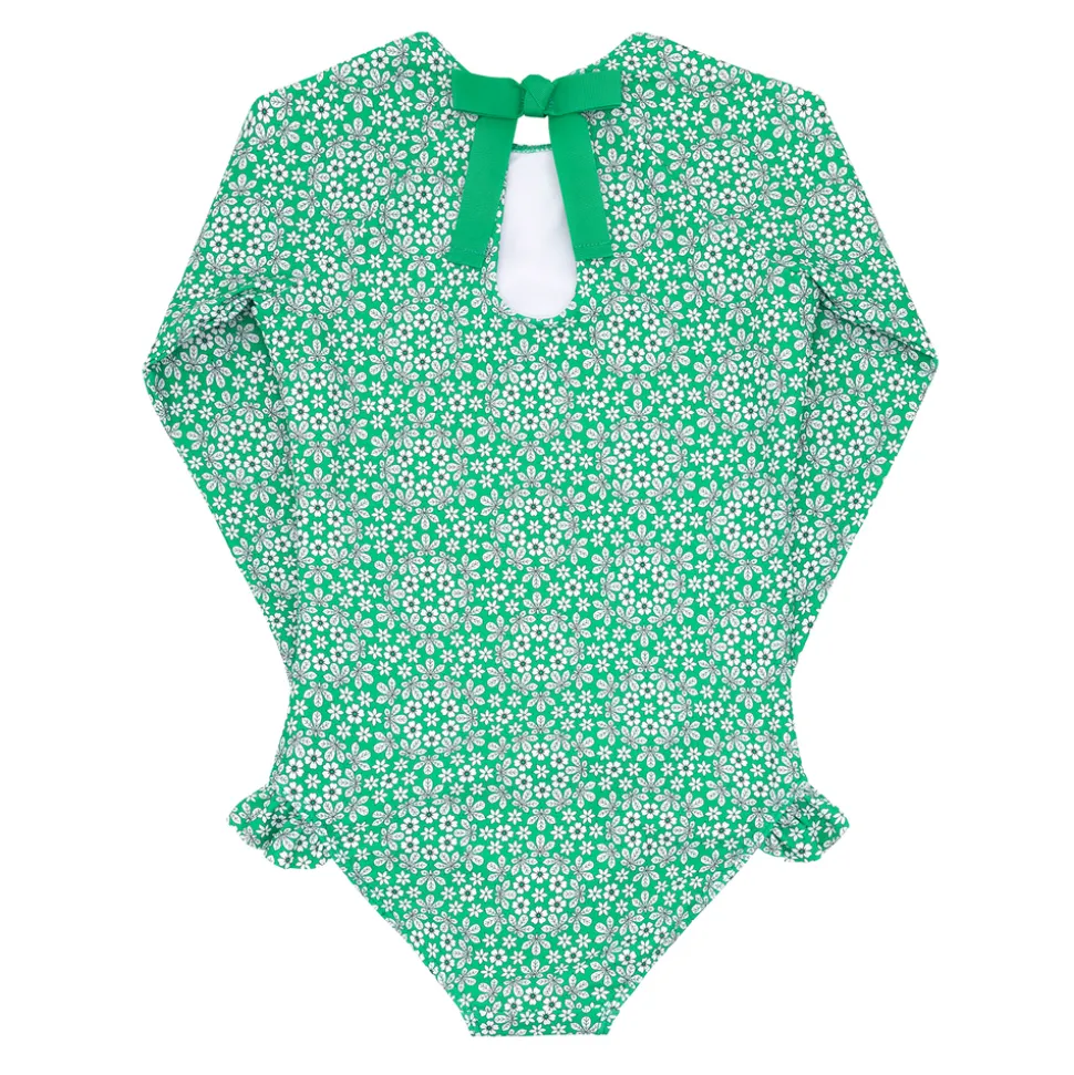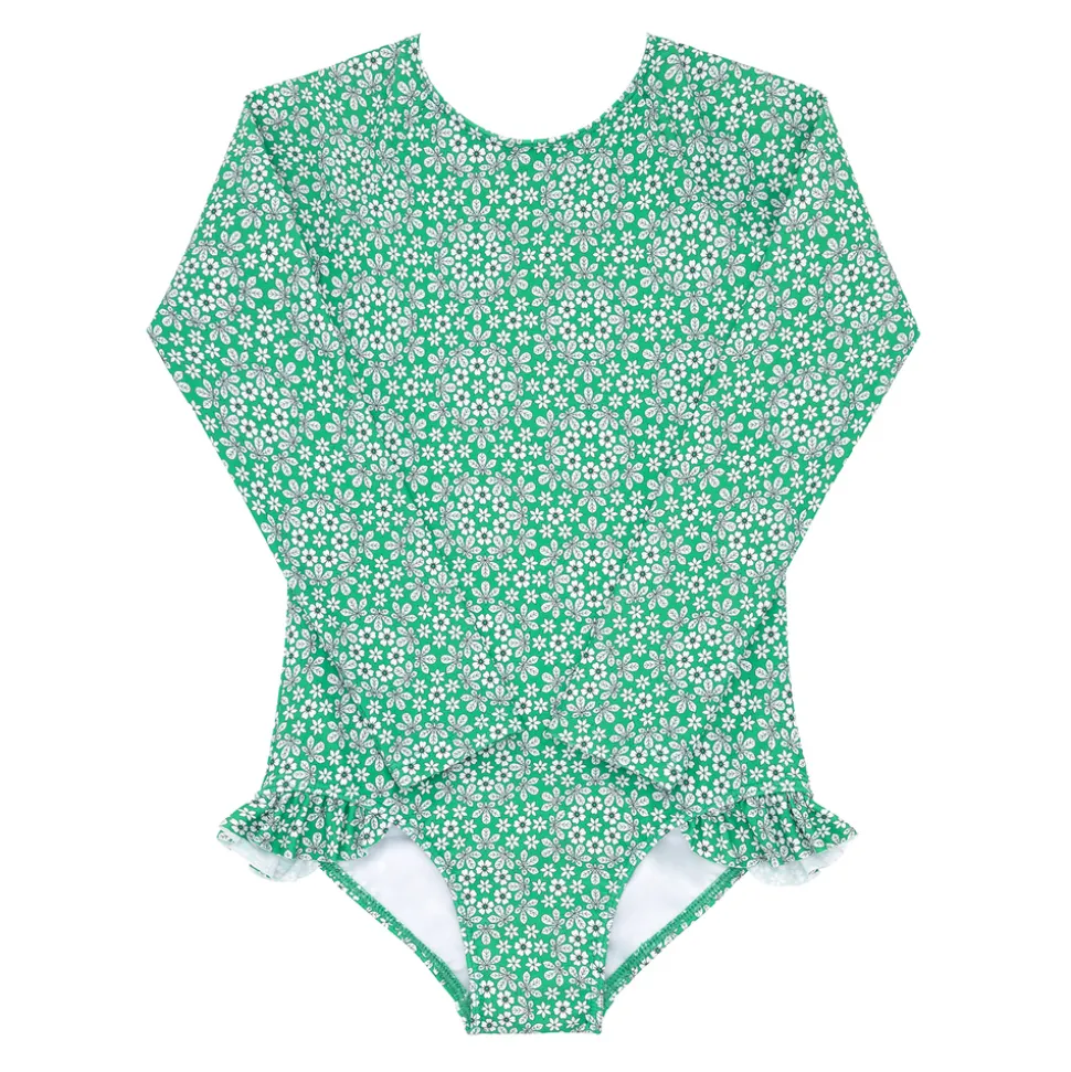 A family favorite for its clean lines and simple details, minnow creates pieces that are playful, polished, and thoughtfully designed for long days, sandy toes, and the wonderment of life on the shore. The Girls Godwin Rashguard One Piece has a chic grosgrain ribbon back tie is fixed with a hidden button closure for easy changes and is crafted in a buttery soft fabric that’s fully lined, except for the sleeves, allowing for both movement and breathability. The feminine ruffle hip detail makes this comfortable staple extra sweet.