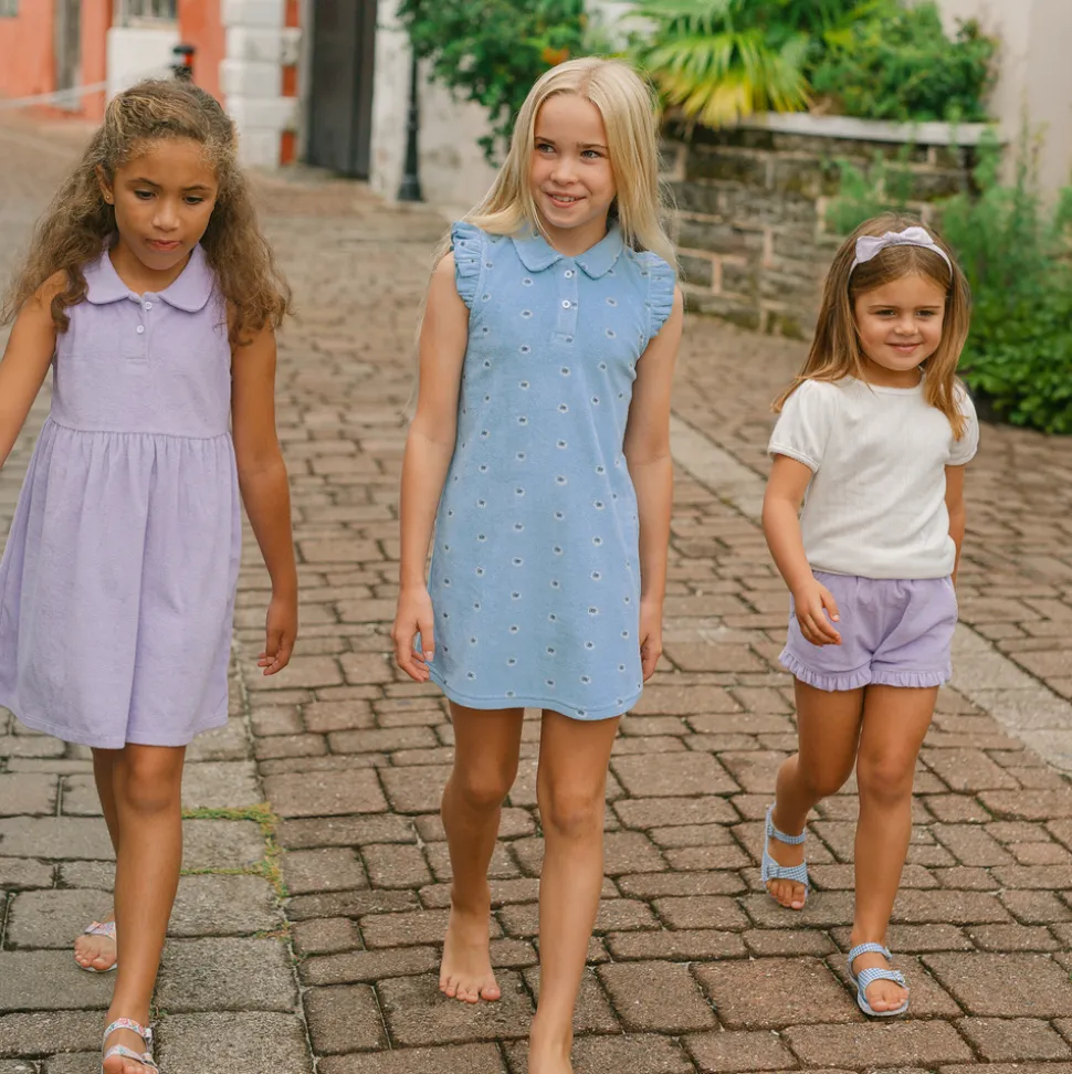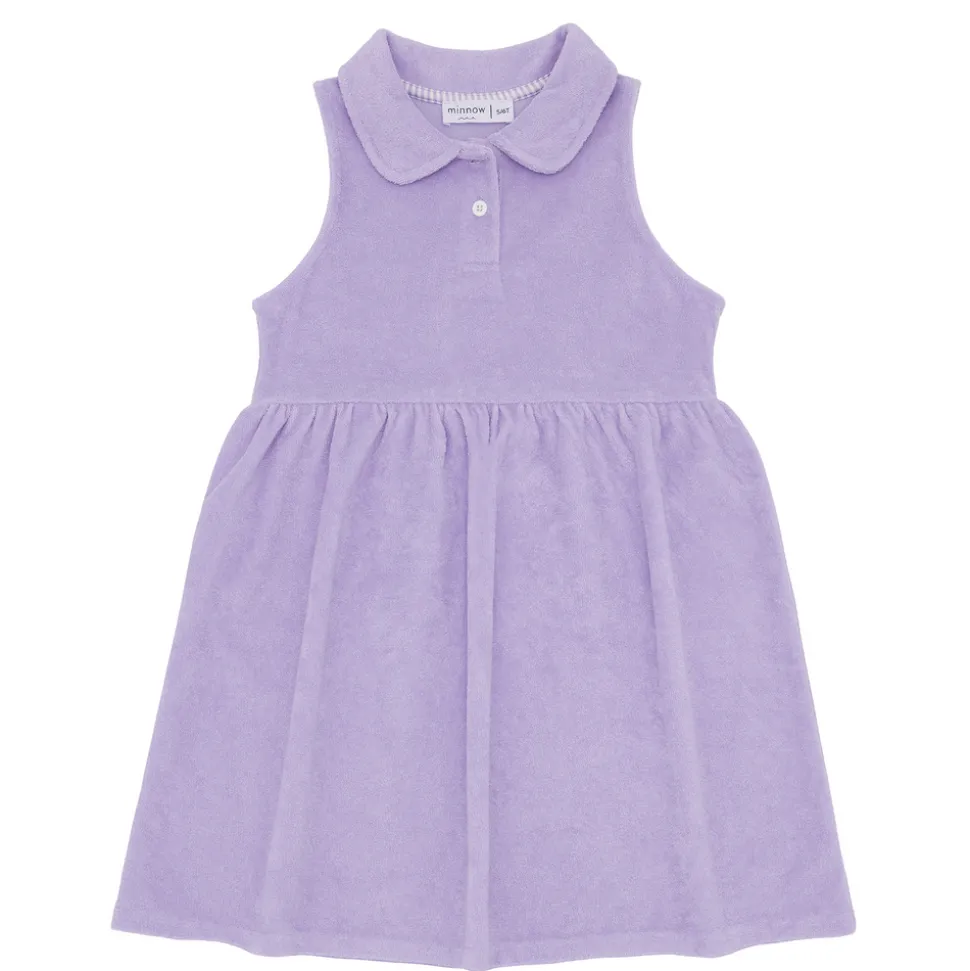 A family favorite for its clean lines and simple details, minnow creates pieces that are playful, polished, and thoughtfully designed for long days, sandy toes, and the wonderment of life on the shore. Versatile, comfy and classic, the Girls Lavender Breeze French Terry Tennis Dress is totally breathable and low maintenance, making it the ideal piece to take them from post-swim adventures to dinner time.