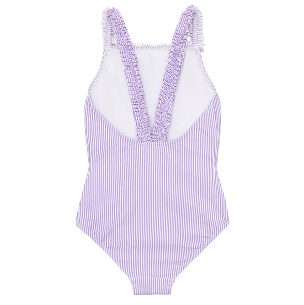 A family favorite for its clean lines and simple details, minnow creates pieces that are playful, polished, and thoughtfully designed for long days, sandy toes, and the wonderment of life on the shore. The Girls Lavender Stripe Ruched Strap One Piece is a charming new addition to the swim collection. Designed with delicate ruched straps and a classic silhouette, it’s fully lined for comfort and coverage—ready for splashing, sunning, and everything in between.