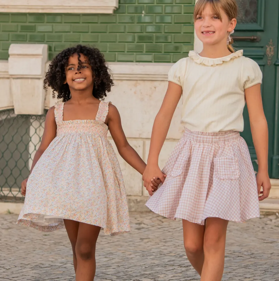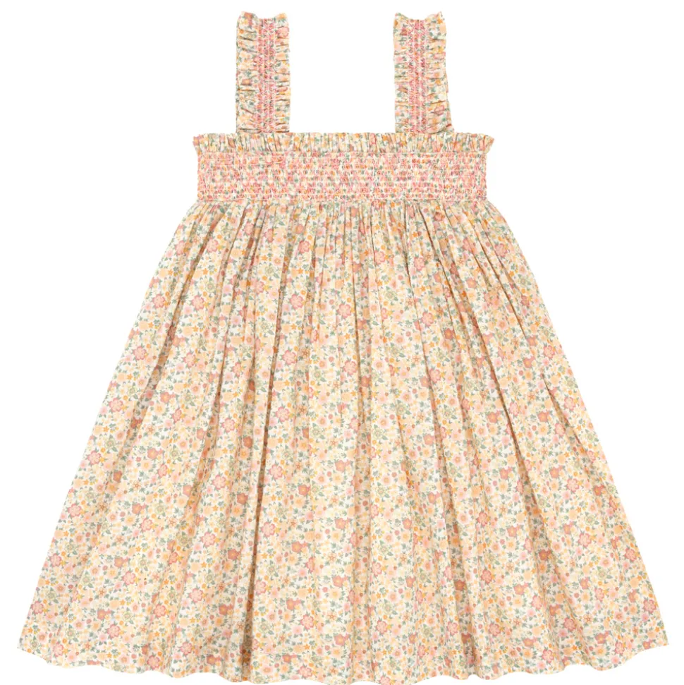 A family favorite for its clean lines and simple details, minnow creates pieces that are playful, polished, and thoughtfully designed for long days, sandy toes, and the wonderment of life on the shore. The Girls Marigold Floral Ruffle Strap Smocked Dress boasts a modern take on a smocked silhouette. This dress is designed with a square neck and delicate smocking with the signature ruffle straps.