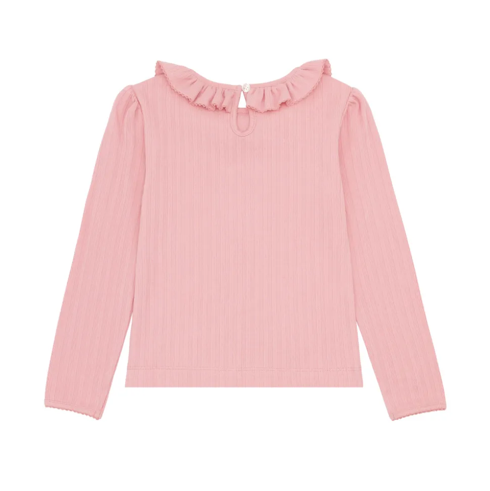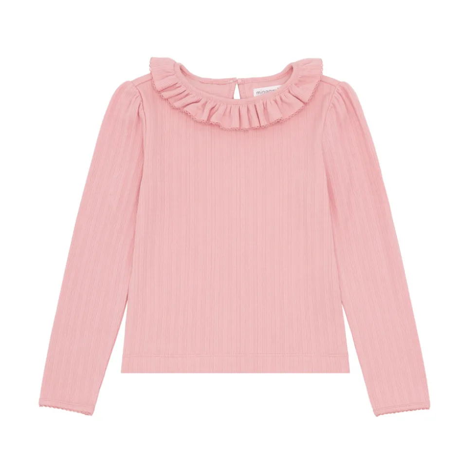 A family favorite for its clean lines and simple details, minnow creates pieces that are playful, polished, and thoughtfully designed for long days, sandy toes, and the wonderment of life on the shore. The Girls Misty Rose Pointelle Long Sleeve Blouse is made from the softest pointelle with ruffle details on the collar. This style is a versatile piece for the new season. Pair it with the easy shorts or layered under an airy dress.