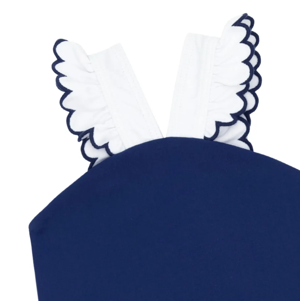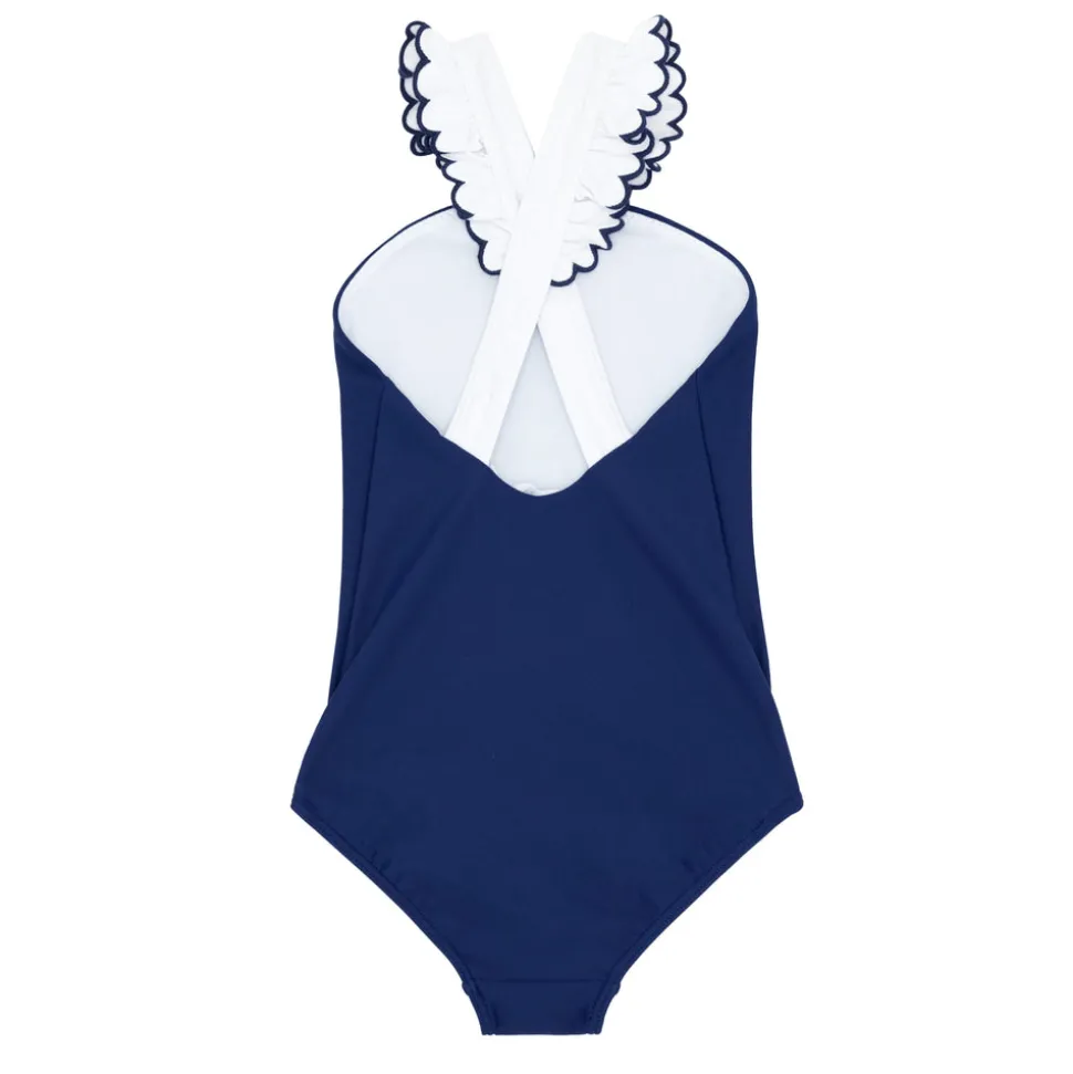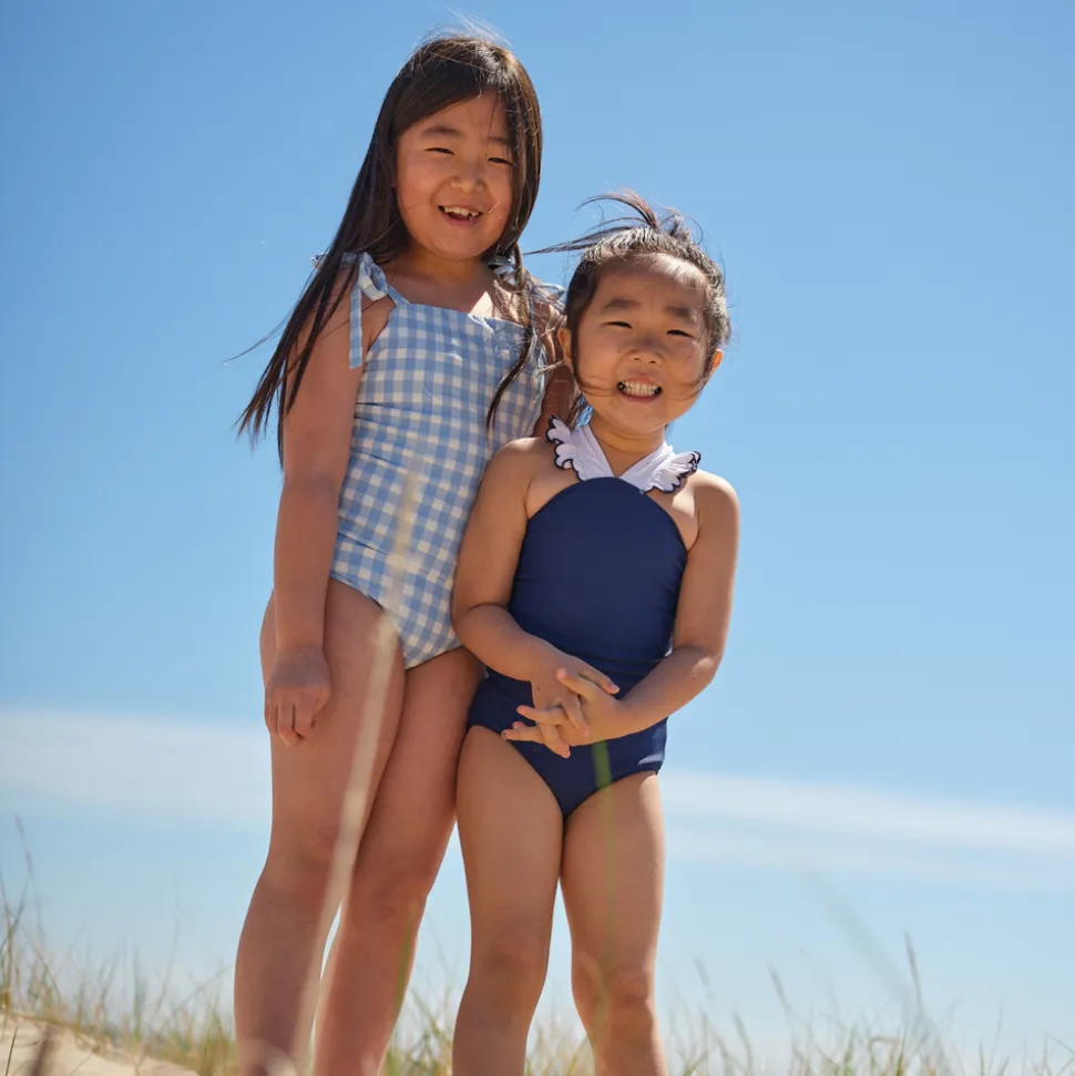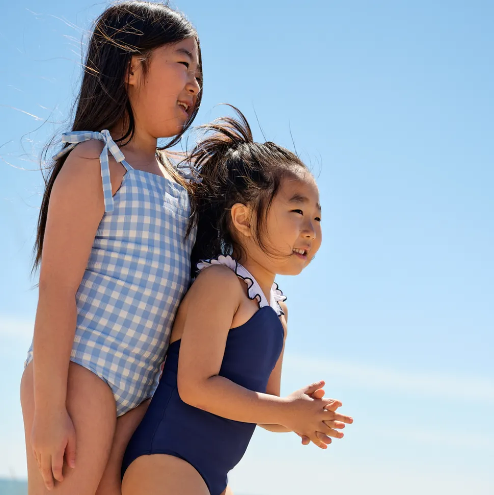 A family favorite for its clean lines and simple details, minnow creates pieces that are playful, polished, and thoughtfully designed for long days, sandy toes, and the wonderment of life on the shore. The Girls Navy & White V-Neck Crossover One Piece boasts a unique V-neck with our the brand’s signature ruffle detail, featuring embroidered trim, and a cute criss-crossed back. So cute for a day at the beach, and they’ll love it both in and out of the water.