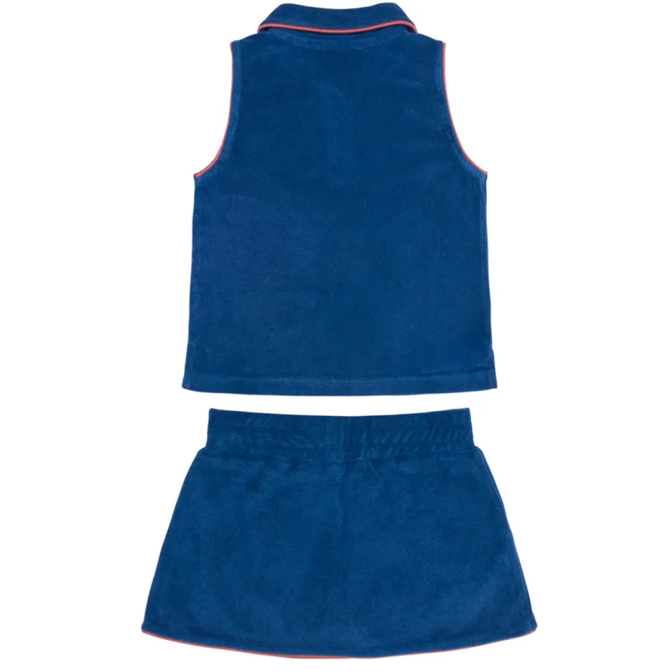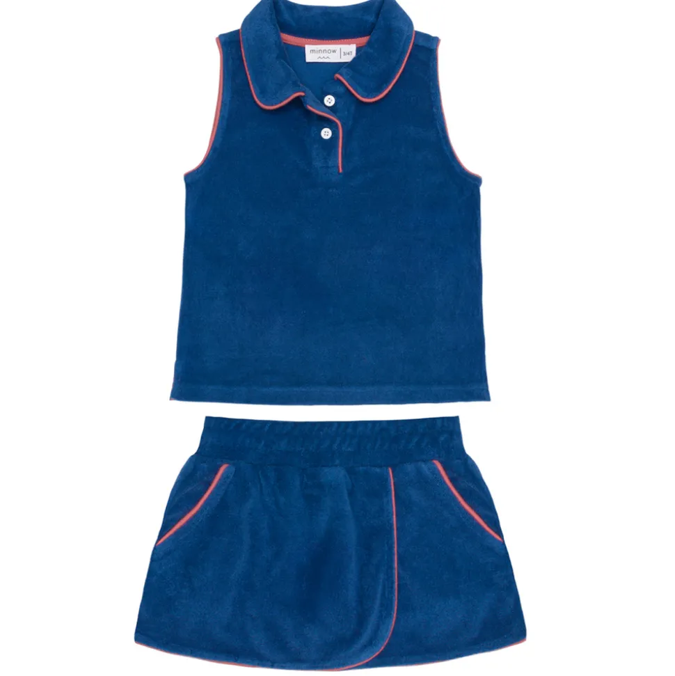 A family favorite for its clean lines and simple details, minnow creates pieces that are playful, polished, and thoughtfully designed for long days, sandy toes, and the wonderment of life on the shore. The Girl’s Newport Navy French Terry Tennis Tank Top & Skort Set is an elevated playtime look inspired by classic European style. Designed in soft french terry, this sleeveless polo and matching skort pair comfort with sophistication for sun-soaked days from poolside to the court.