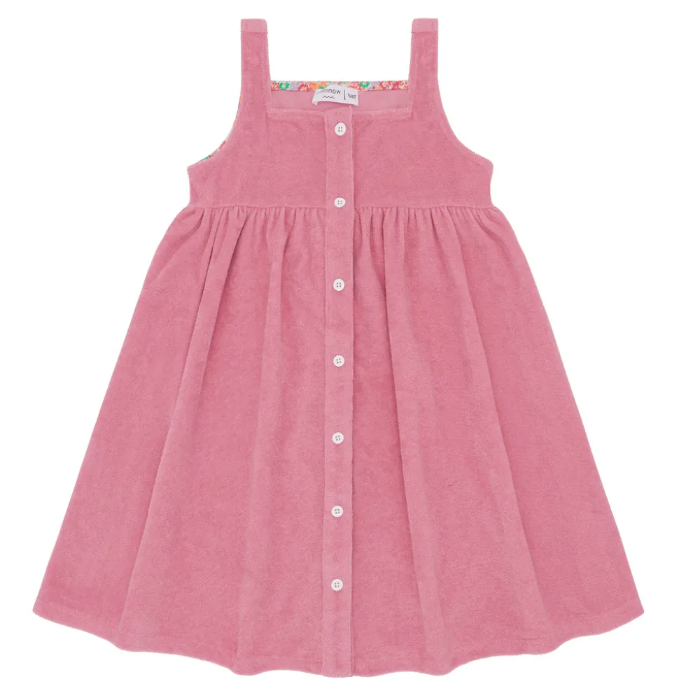 A family favorite for its clean lines and simple details, minnow creates pieces that are playful, polished, and thoughtfully designed for long days, sandy toes, and the wonderment of life on the shore. An elevated take on a timless style, crafted in the brand’s super soft French terry, the Girls Pink Sands French Terry Square Neck Button Up Dress is comfortable and soft with thoughtful details like front buttons and an airy silhouette.