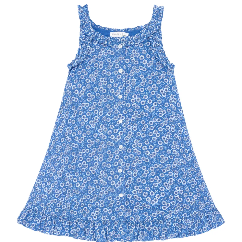 A family favorite for its clean lines and simple details, minnow creates pieces that are playful, polished, and thoughtfully designed for long days, sandy toes, and the wonderment of life on the shore. The Girls Rosebay Shift Dress has a sweet square neck for an easy, comfortable fit. The blue floral print features delicate ruching for added feminine detail.