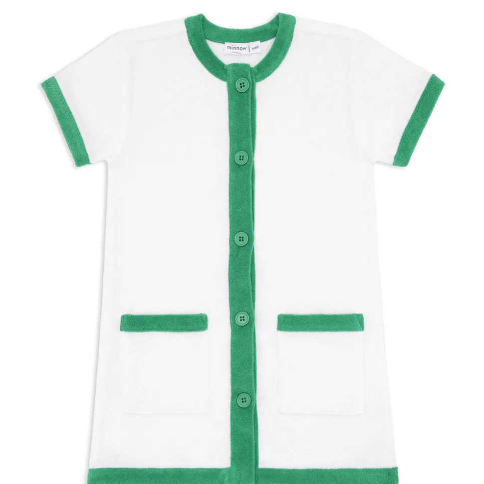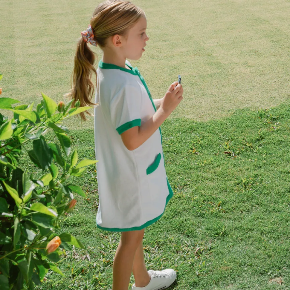 A family favorite for its clean lines and simple details, minnow creates pieces that are playful, polished, and thoughtfully designed for long days, sandy toes, and the wonderment of life on the shore. Featuring a fun gingham print with a drawstring cord. An elevated take on the brand’s beloved French terry shift, the Girls White French Terry Button Down Dress is easy to throw on and go, for post-swim or playtime, with its cozy feel and special details like front pockets, buttons, and contrast piping.