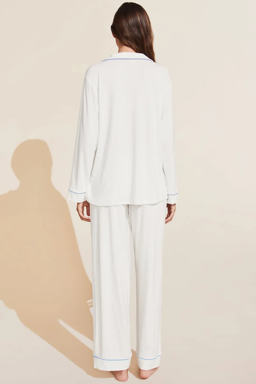 In 1996, Eberjey co-founders Ali and Mariela understood the visceral desire for beautiful, functional sleepwear that supported sleep and individual style. At last, pajamas can be sensual, comfortable, tailored, and effortless. Soft-to-the-touch, the Gisele The Long Pj Set in White/Ice Blue has a roomy shape, extra coverage, and a fit that you can wear and gift with confidence.